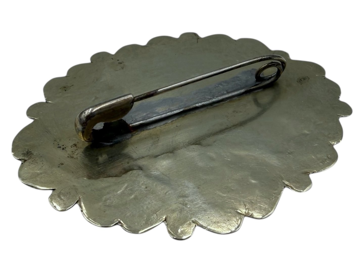 Stor broche med fugl og fem sten.Brochen er ustemplet men det er formentlig sølv.