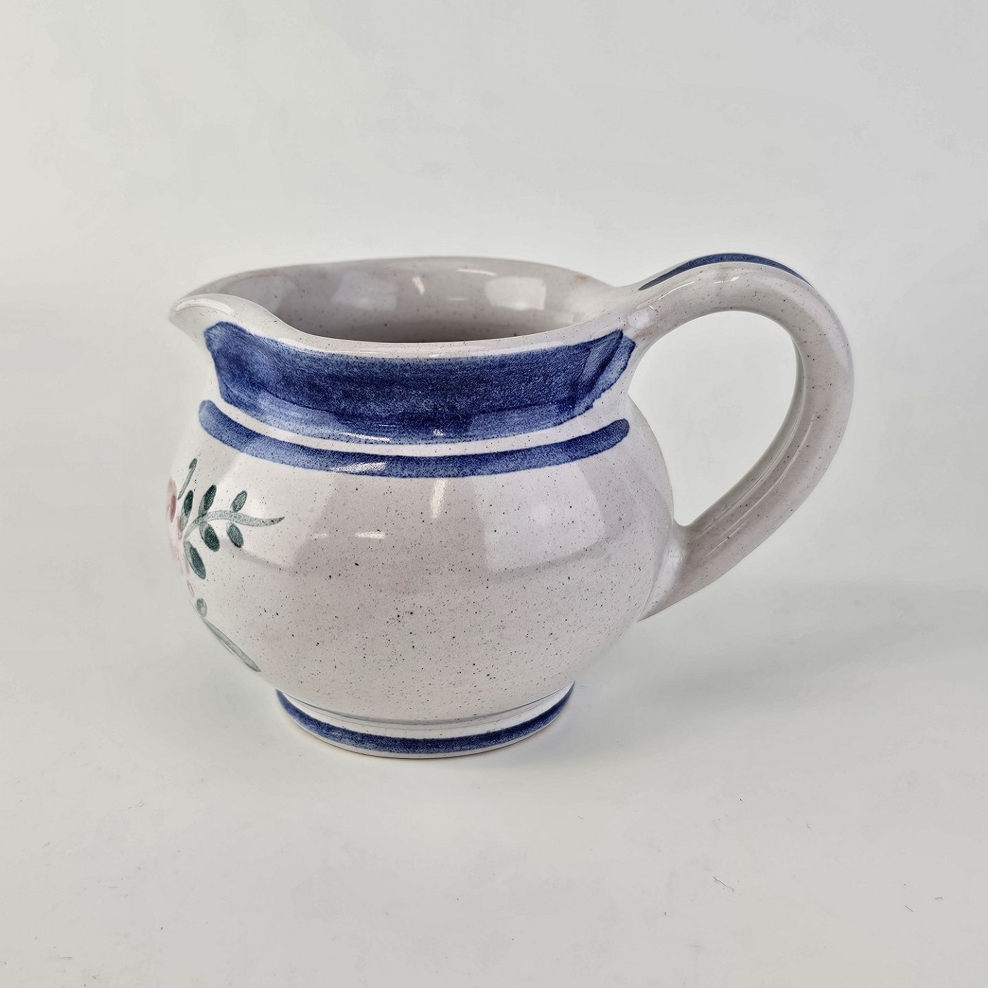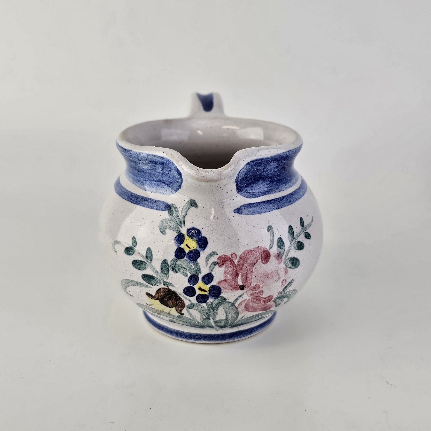 Flødekande i keramik med blå detaljer og blomsterdekorationProducent Lars Syberg keramik