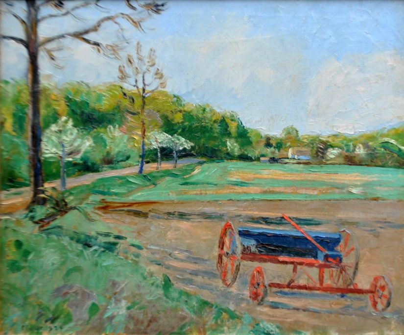 Naur, Albert (1889–1973) Dänemark: Eine Sämaschine auf einem Feld, 1929. Öl auf Leinwand. Signiert: Naur 1929. H: 64 cm. B: 77 cm.