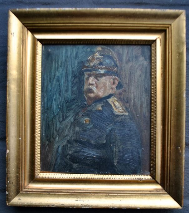 Hansen, Hans Nicolaj (1853–1923), Dänemark: Porträt des stellvertretenden Feuerwehrchefs, Hauptmann August Carlsen. Öl auf Karton. Rückseitig mit der Jahreszahl 1891 versehen. 19 × 16,5 cm.