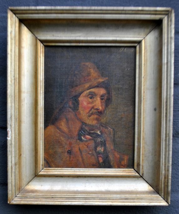 Carlsen, Oscar Conrad (1840–1864) Dänemark: Porträt eines Fischers. Öl auf Leinwand/Karton. Signiert: OC 1856. 15 × 11 cm.Gerahmt in einem antiken Silberrahmen: 23,5 x 19,5 cm.