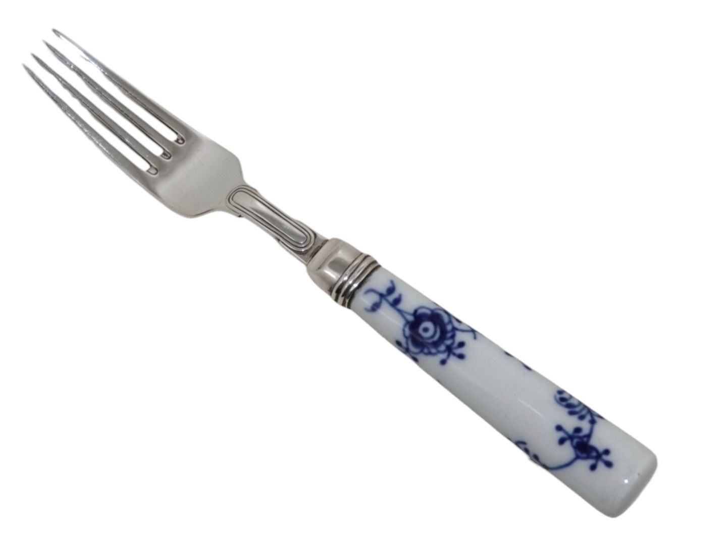 Royal Copenhagen Musselriflet Riflet, sjælden gaffel monteret med Anton Michelsen sterlingsølv.Længde 16,4 cm.