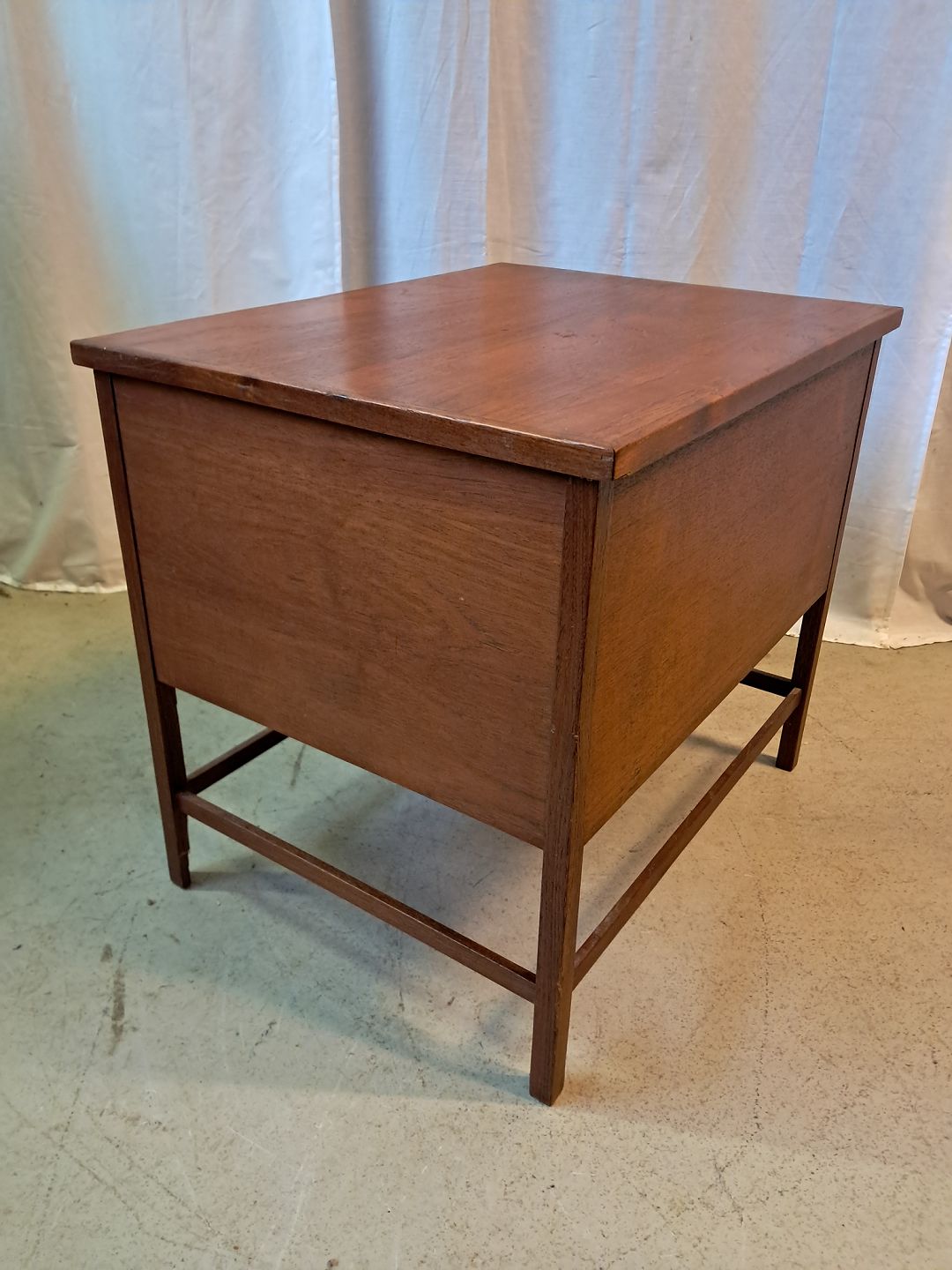Kassemøbel i fineret teaktræ, fra 1960erne.Det har brugsspor og en defekt på det ene ben.