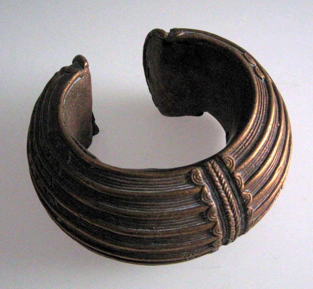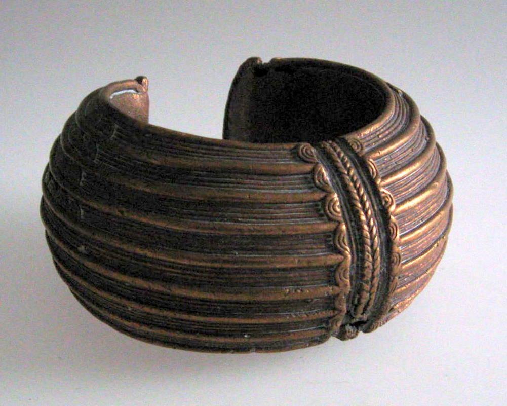 Afrikanischer Armreif, 19. Jahrhundert. Aus Kupfer. Verziert mit geometrischem Muster. Durchmesser: 12 cm.Bestellnummer: 6949