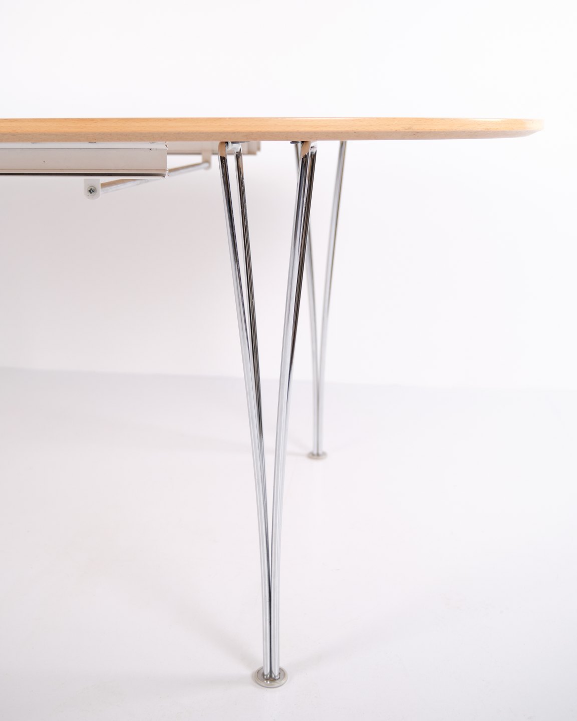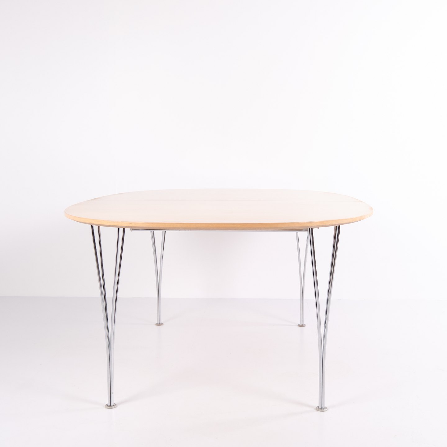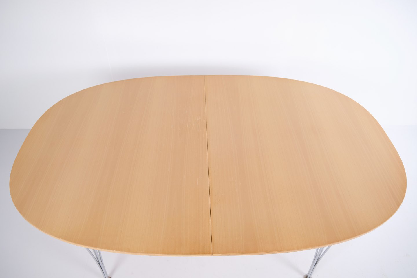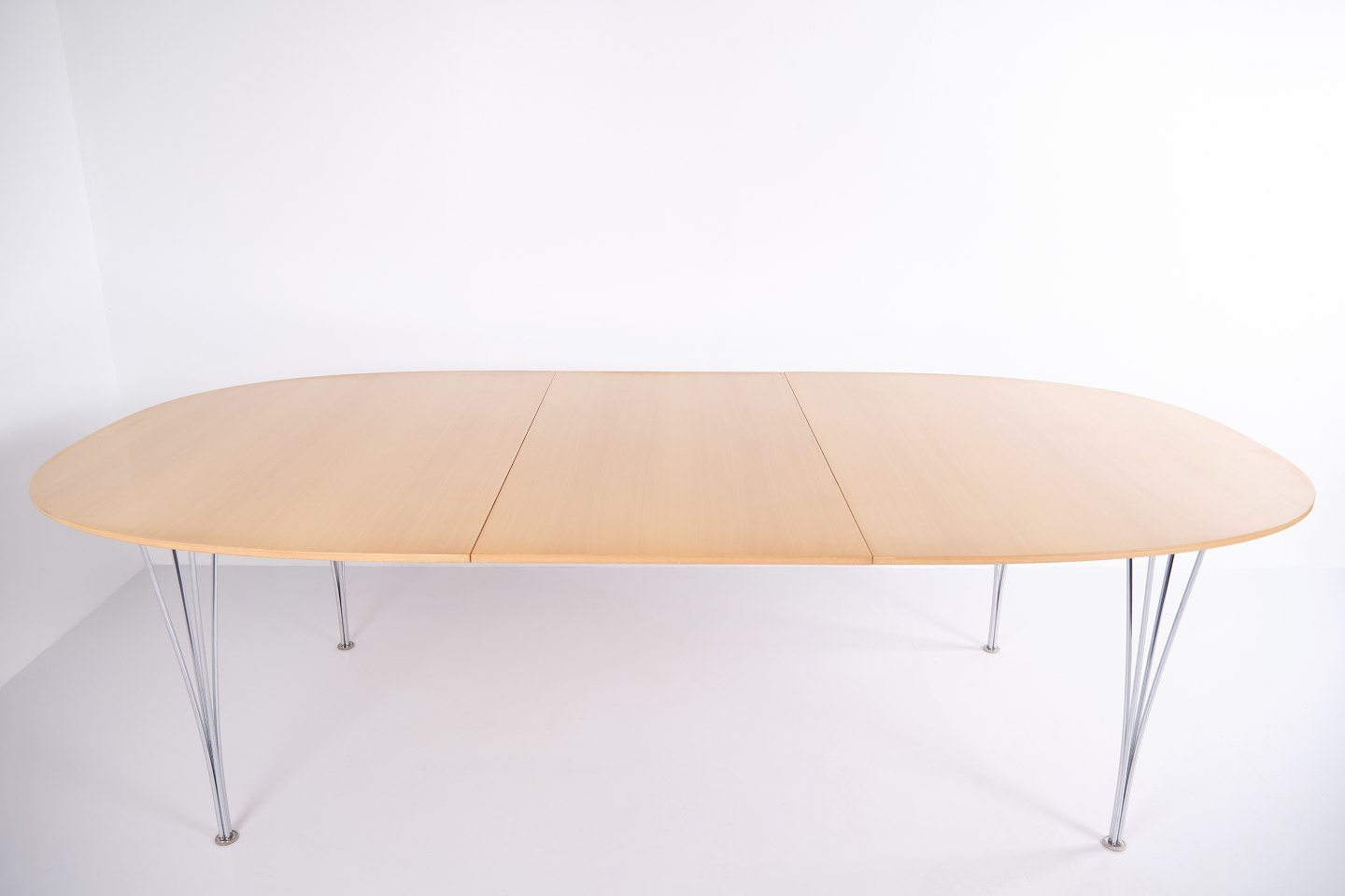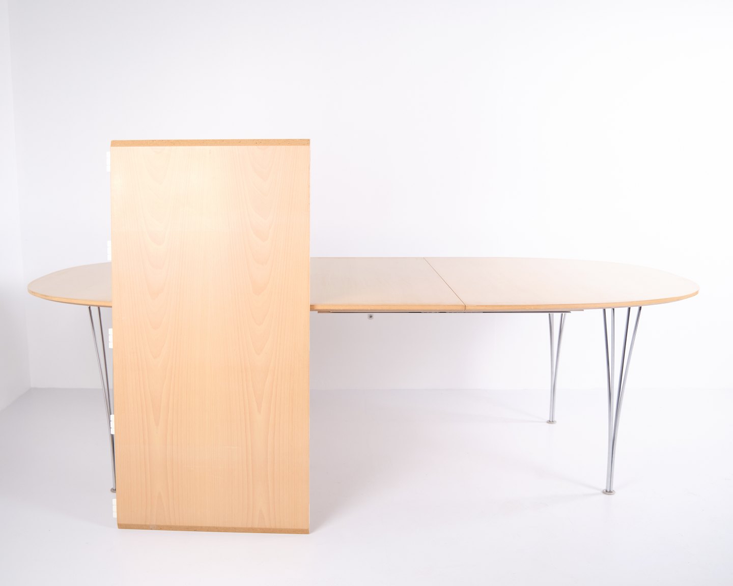 Super Ellipse Esstisch von Piet Hein & Bruno Mathsson für Fritz Hansen. Buchenholz mit 2 Einlegeplatten. Produziert 2001.— Designer: Piet Hein & Bruno Mathsson