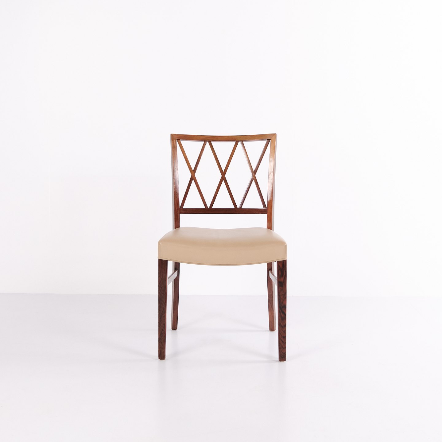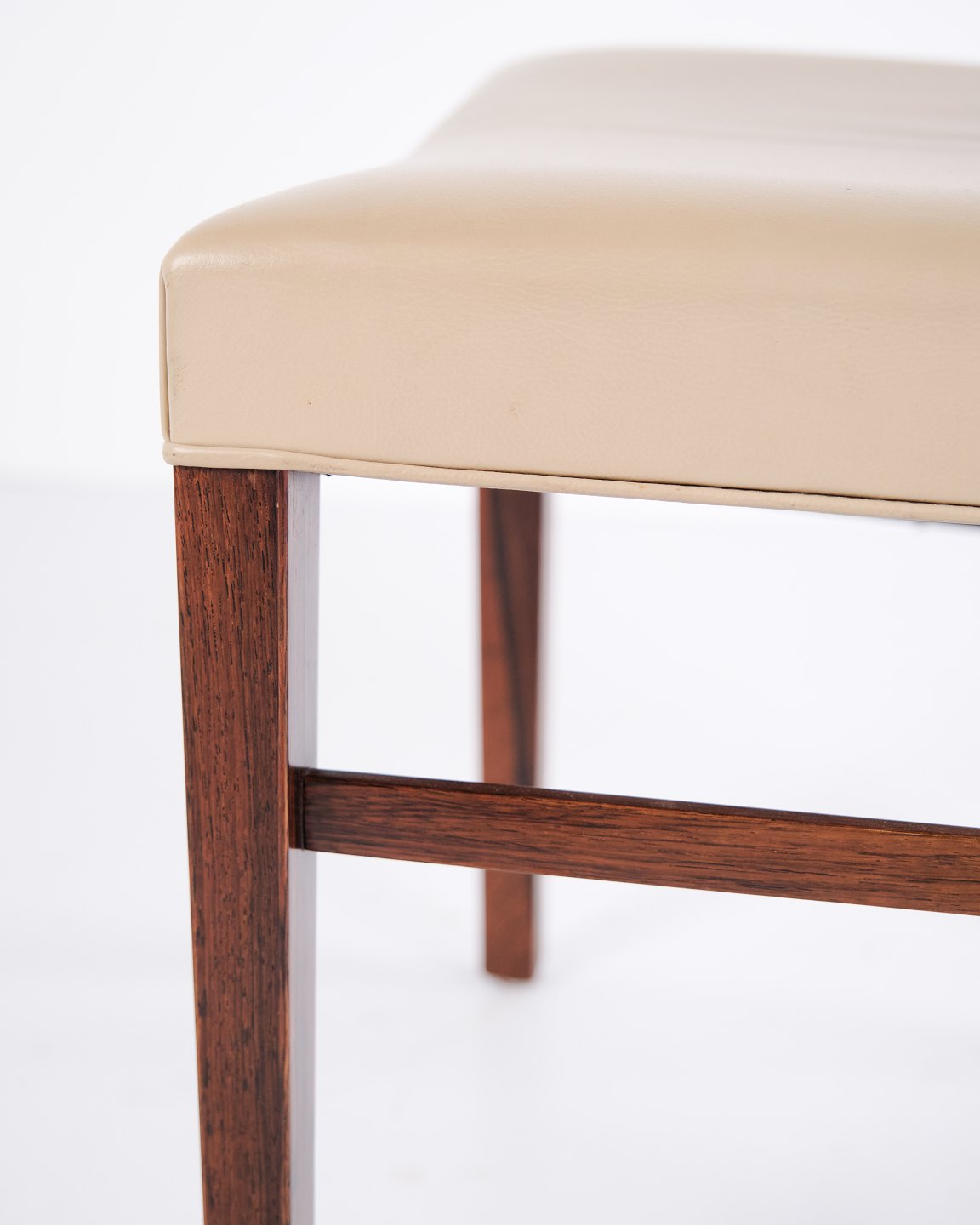 Satz von vier Esszimmerstühlen von Ole Wanscher für A.J. Iversen. Palisander und cremefarbenes Leder. Dänisches Design aus den 1960er-Jahren.— Designer: Ole Wanscher