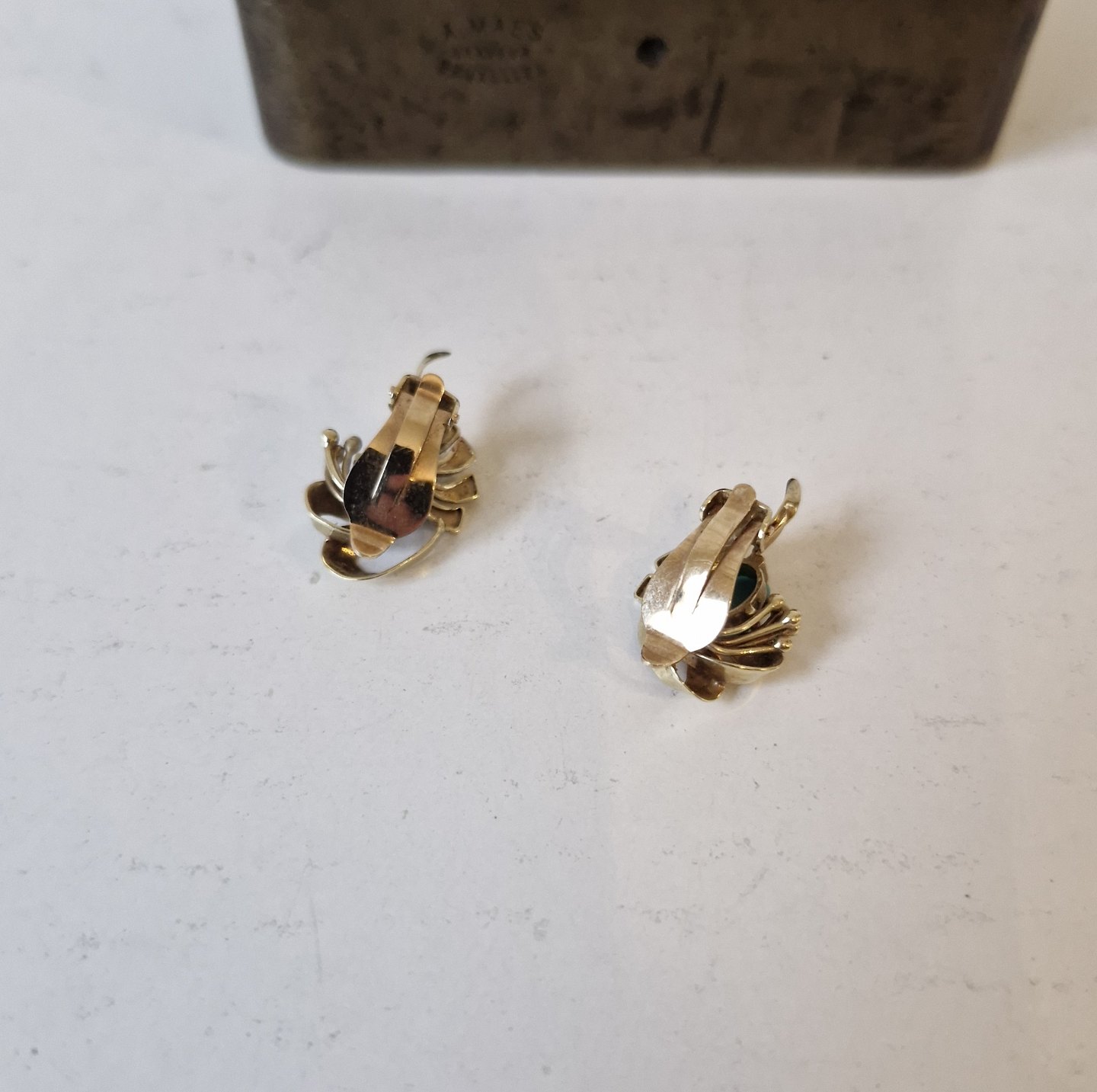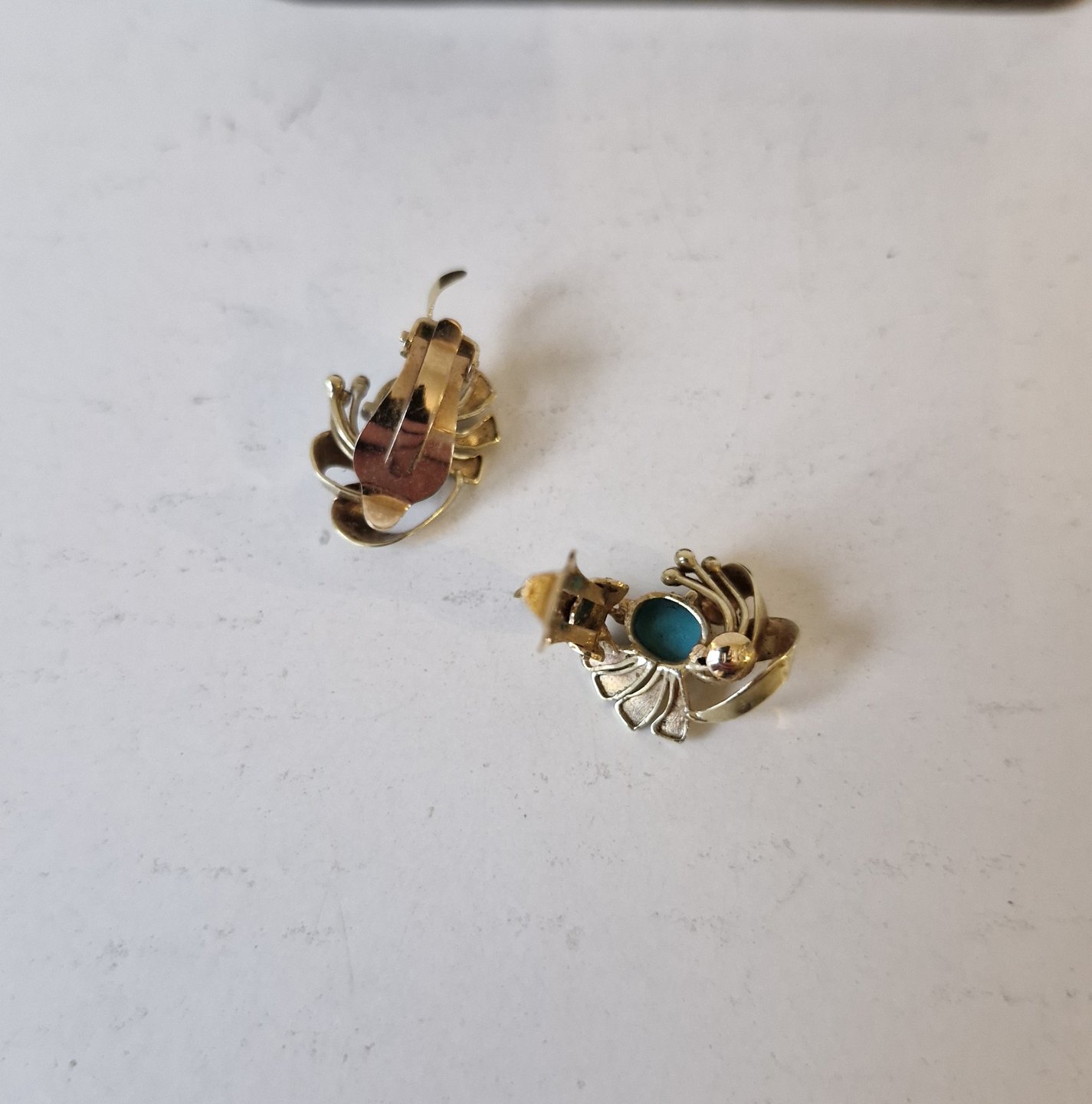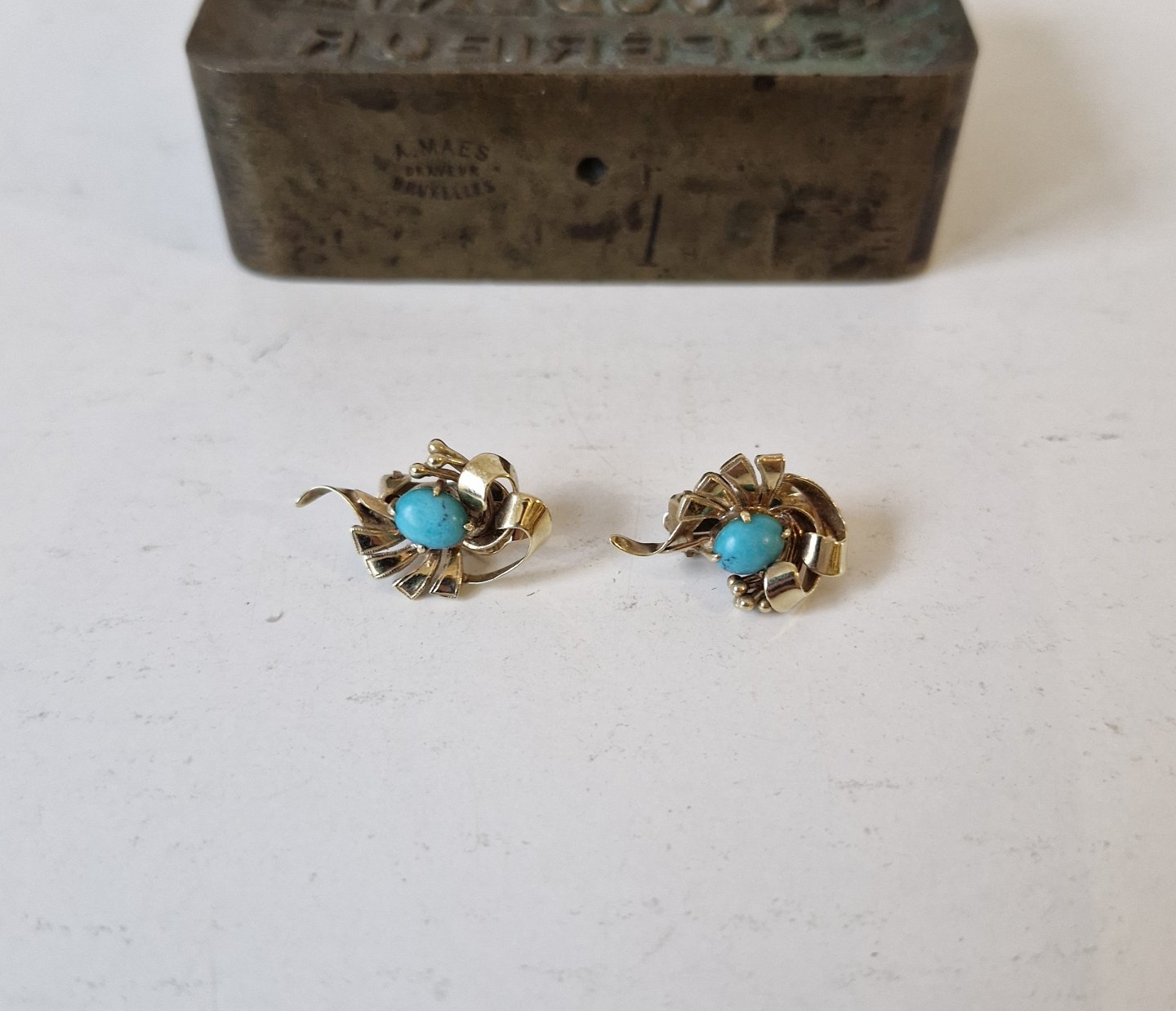 Par smukke øreklips i 14 kt guld med turkisStemplet 14 k