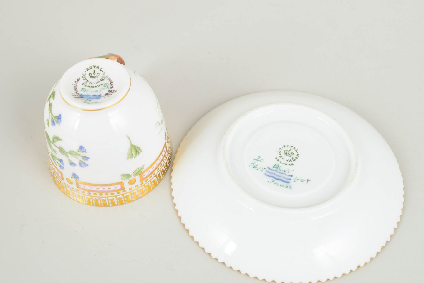 Bio: Flora Danica-stellet blev introduceret i 1790 og regnes blandt Royal Copenhagens mest prestigefyldte produktioner. Dekorationerne er baseret på det monumentale botaniske værk Flora Danica og er kendetegnet ved høj detaljerigdom og fremragende håndværksmæssig kvalitet. moccakopper var traditionelt anvendt til servering af stærk kaffe og repræsenterer en raffineret del af det klassiske kaffestel.