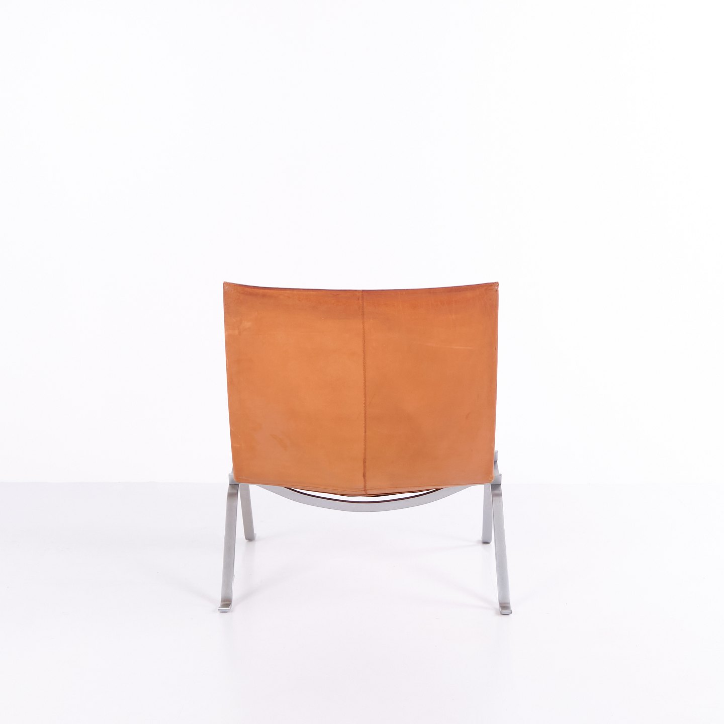 PK22 Sessel von Poul Kjærholm für E. Kold Christensen. Originalpolsterung aus patiniertem Cognac-Leder. Dänische Designikone der 1950er-Jahre.— Designer: Poul Kjærholm