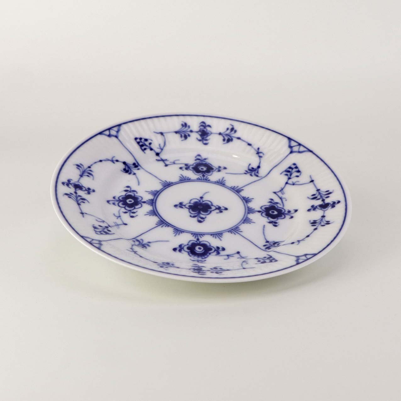 Flad kagetallerken i kongelig porcelæn fra stellet Musselmalet riflet. Nr. 1/300 Producent Royal Copenhagen
