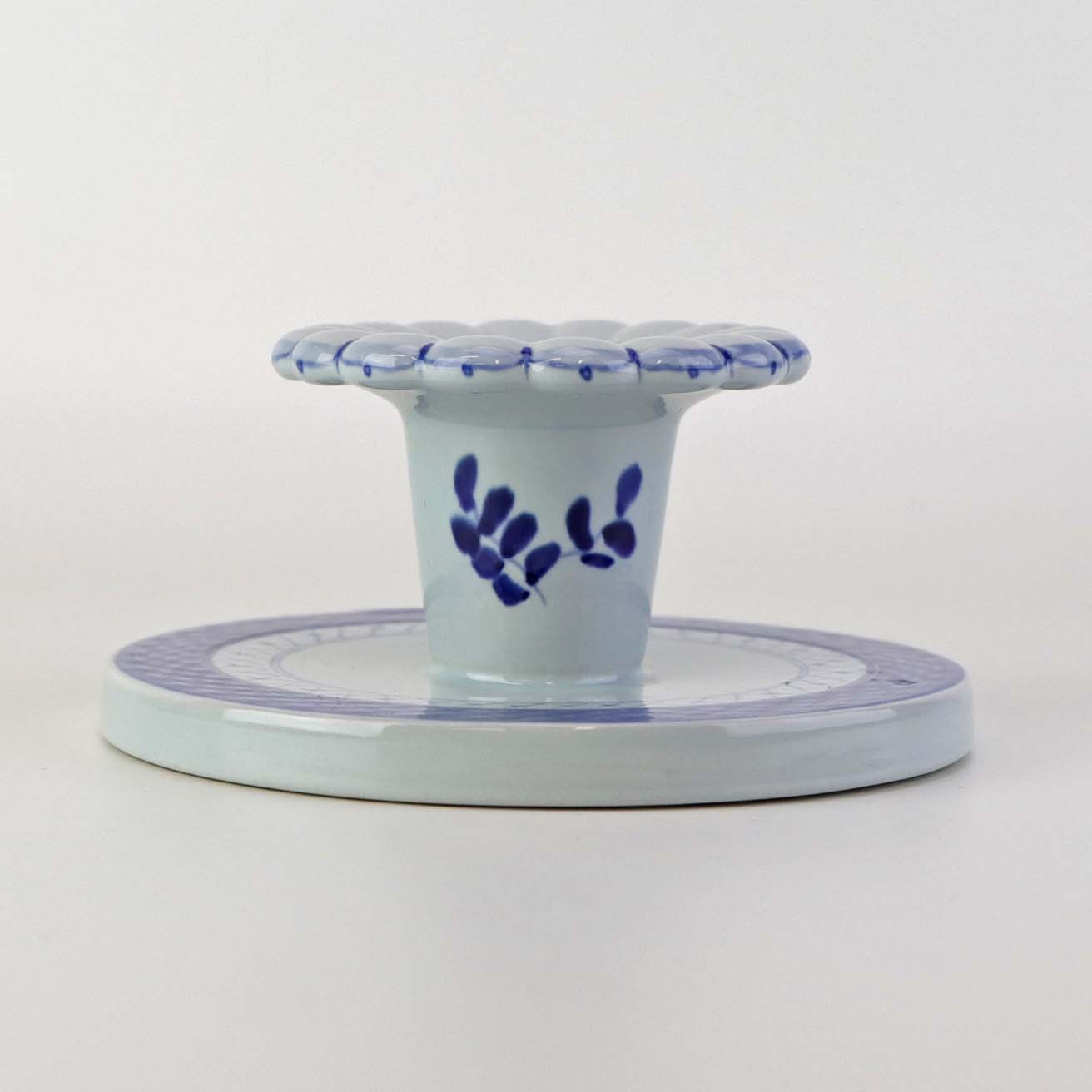 Lav lysestage i fajance fra stellet Blå Tranquebar. Nr. 11/1996Formgiver Hans Christian Joachim
