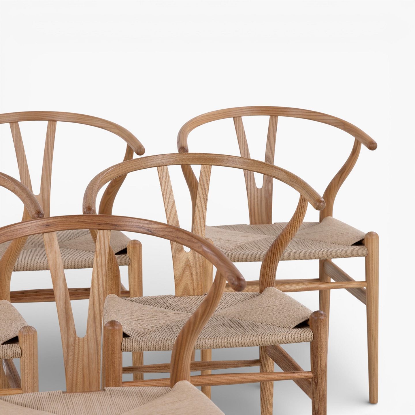 Hans J. Wegner / Carl Hansen.CH 24 - Sæt á 6 spisestole i elm med sæde i flettet papirgarn. Mærket fra producent. Limited Edition fra 2017.