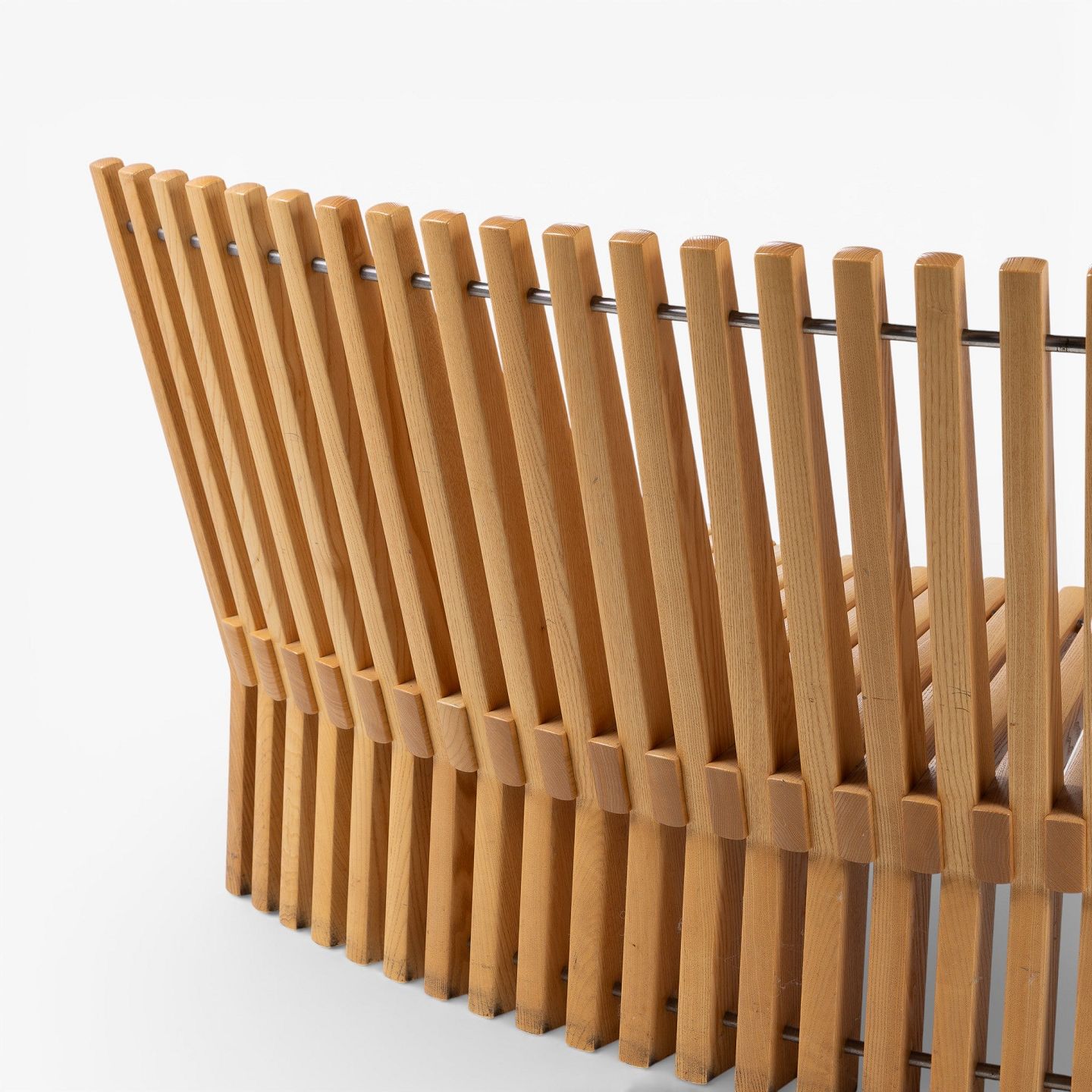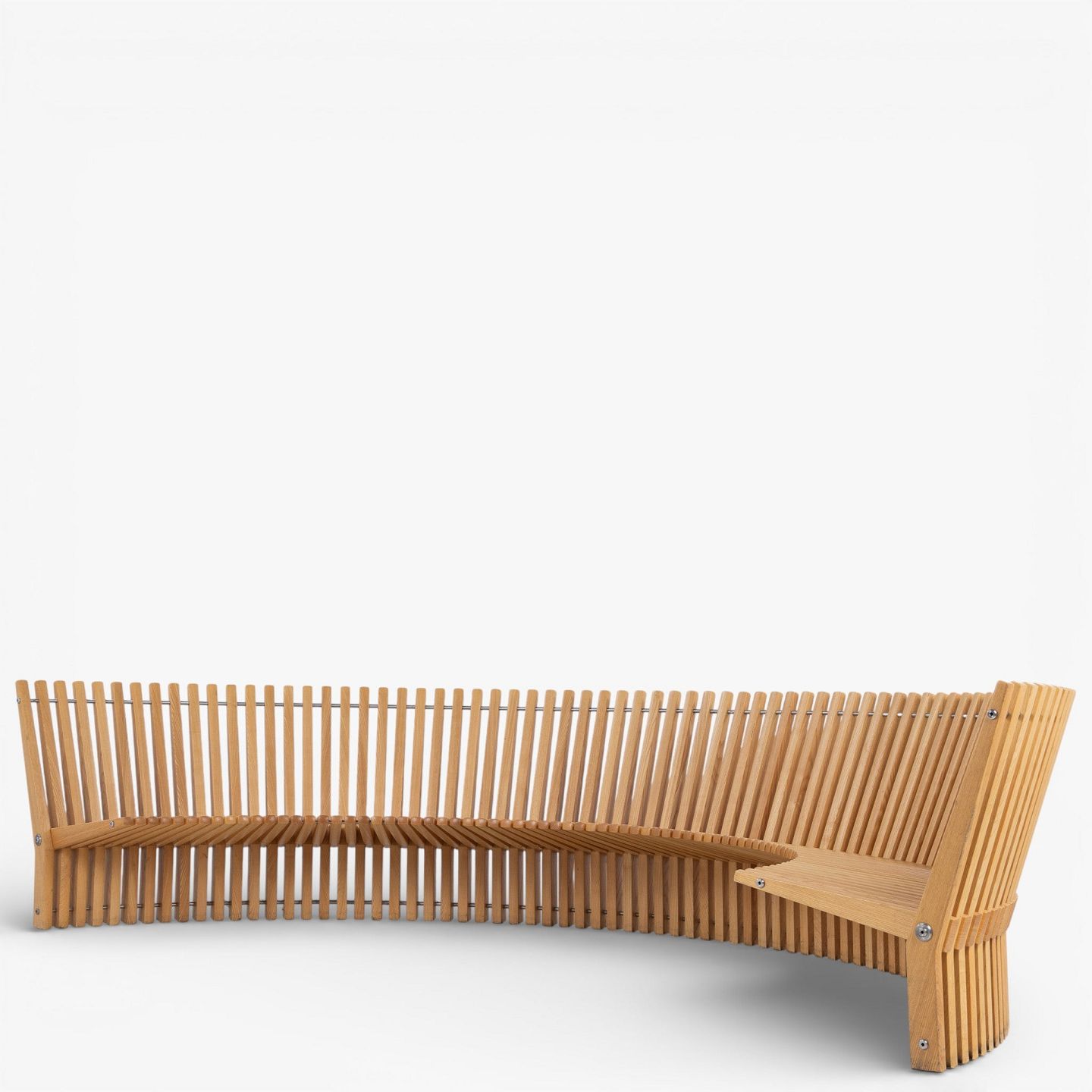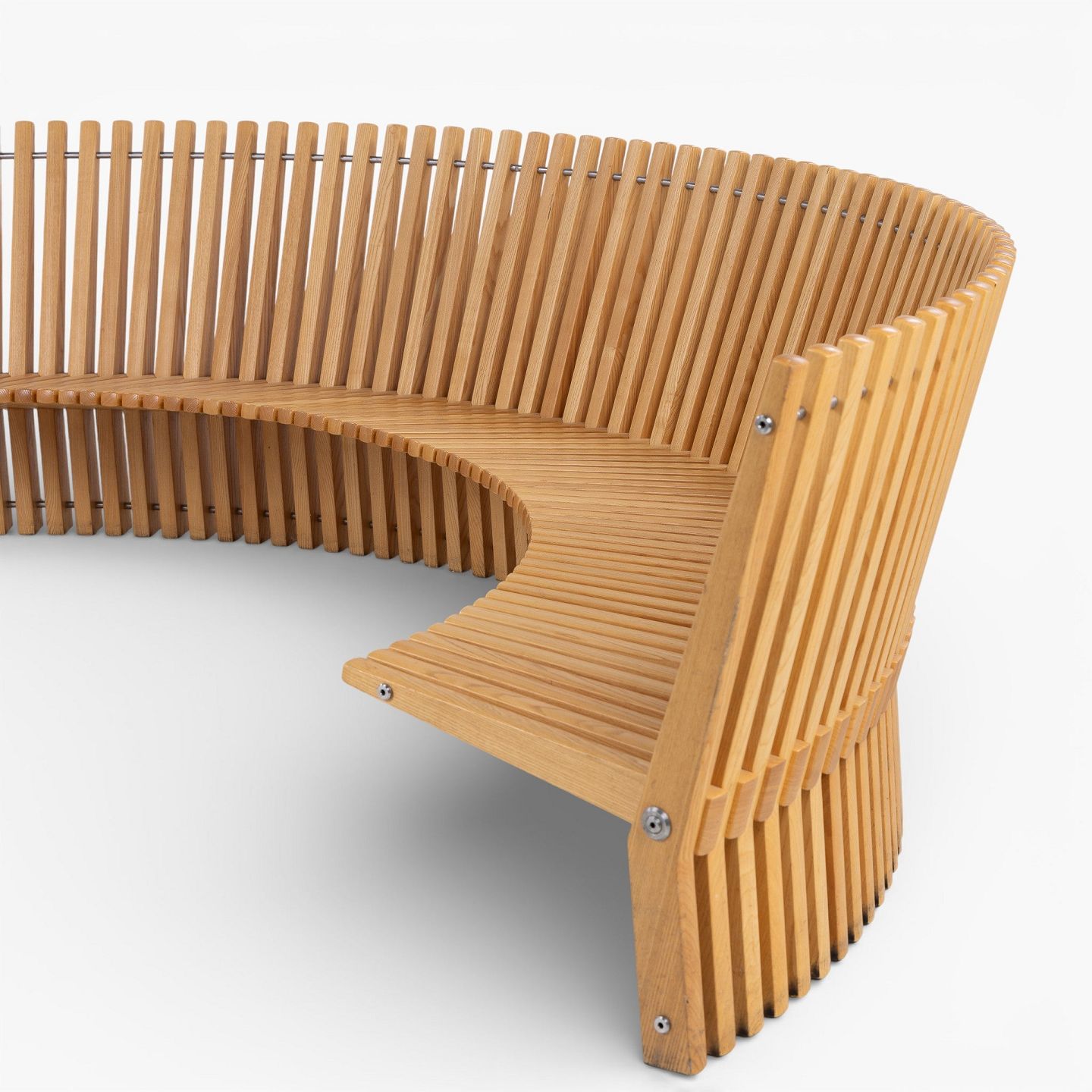 Per Borre / Fredericia Furniture.'Astral'-bænk i massiv patineret elmetræ i form af en halvcirkel. Formgivet i 1979.