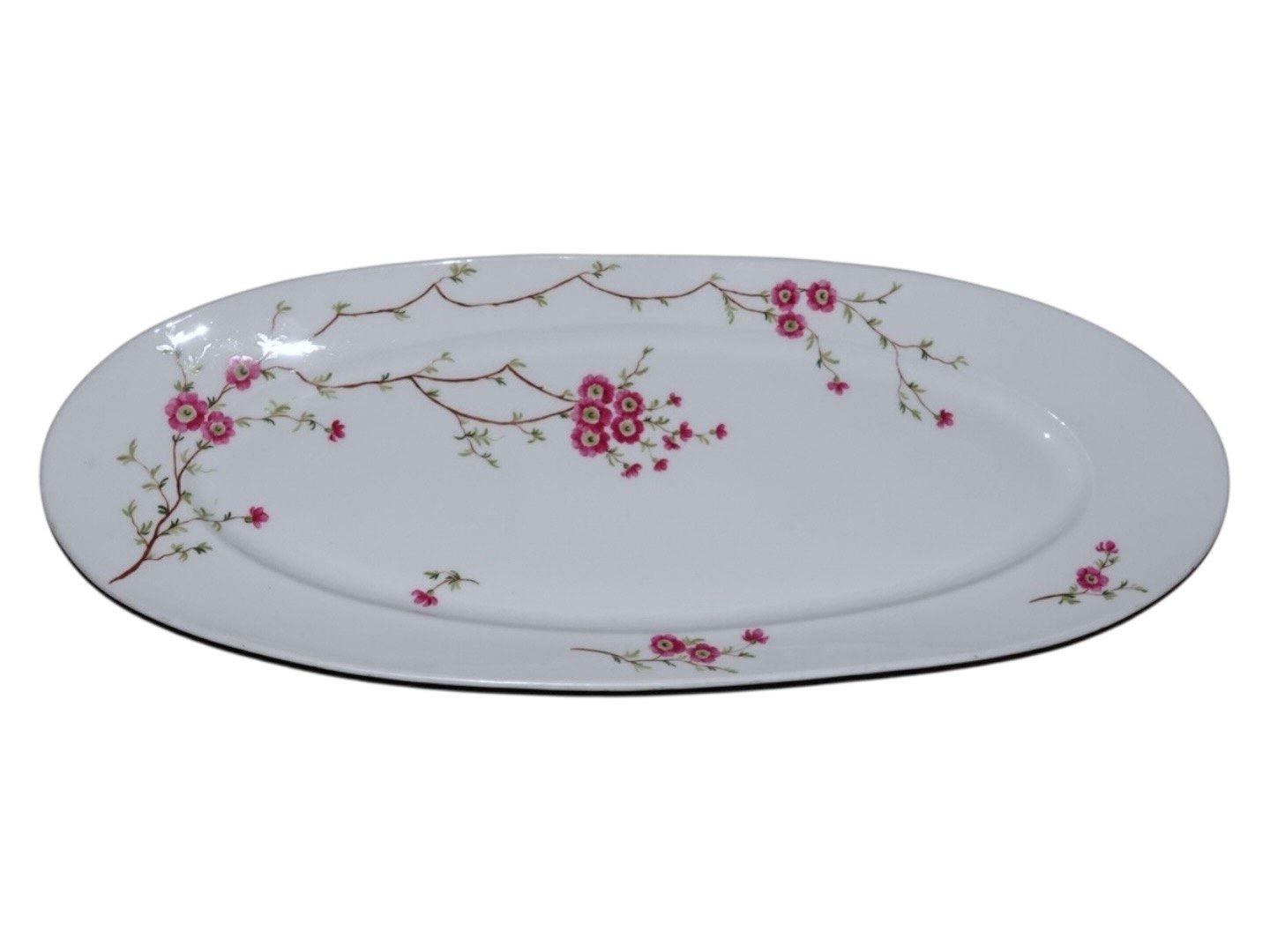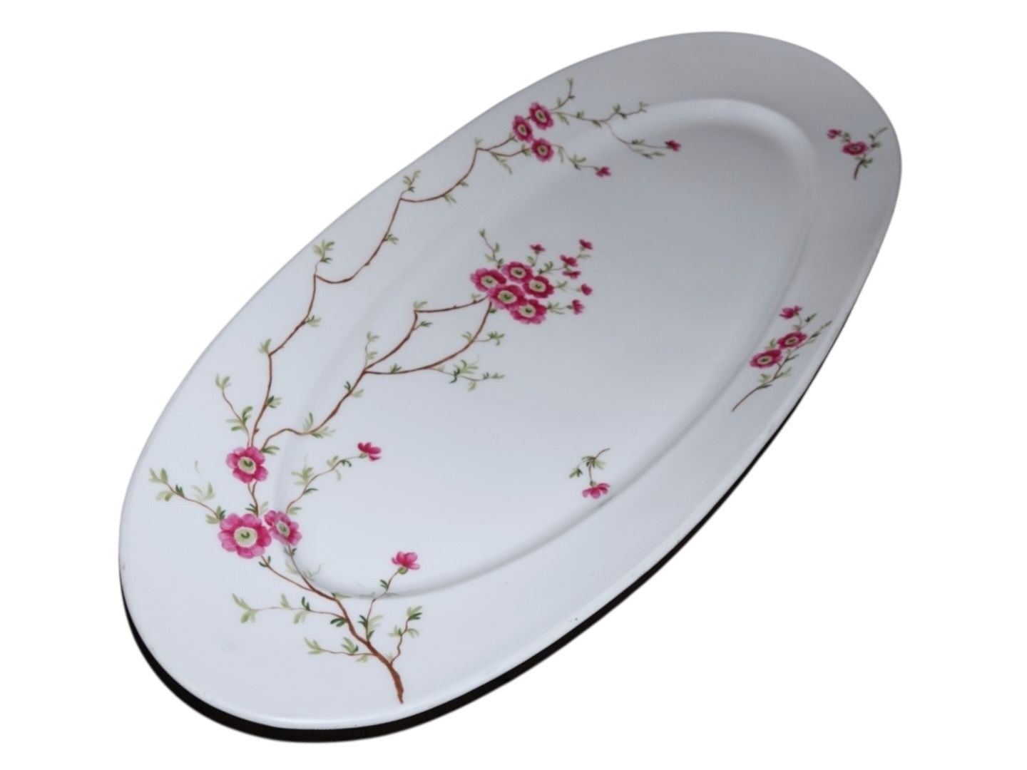 Royal Copenhagen Kirsebær, stort fiskefad dekoreret med pink kirsebærblomster.Stemplerne viser, at denne er produceret mellem 1894 og 1897.