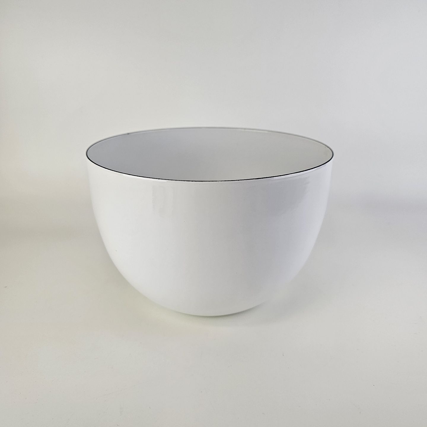 Arabia Finel hvid skål med sort kant i emaljeFormgiver Kaj Franck