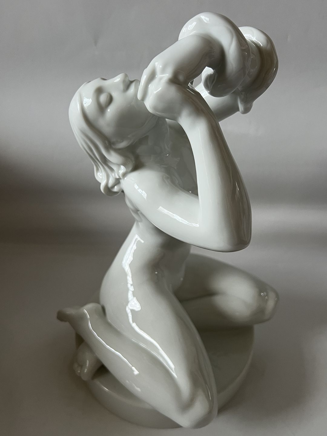 Dahl Jensen Elegant og dynamisk porcelænsfigur, med motiv af Eva med slangen. Figuren har mange flotte detaljer, og fremstår minimalistisk i stilen. Den ensfarvede hvide farve giver figuren en tidløs tilstand, hvor motivet træder frem og skaber liv og dynamik. Figuren er fremstillet med sans for detaljen, og vil være et ideelt samlerobjekt. Figuren er 1. sortering, og uden skader eller skår af nogen art.