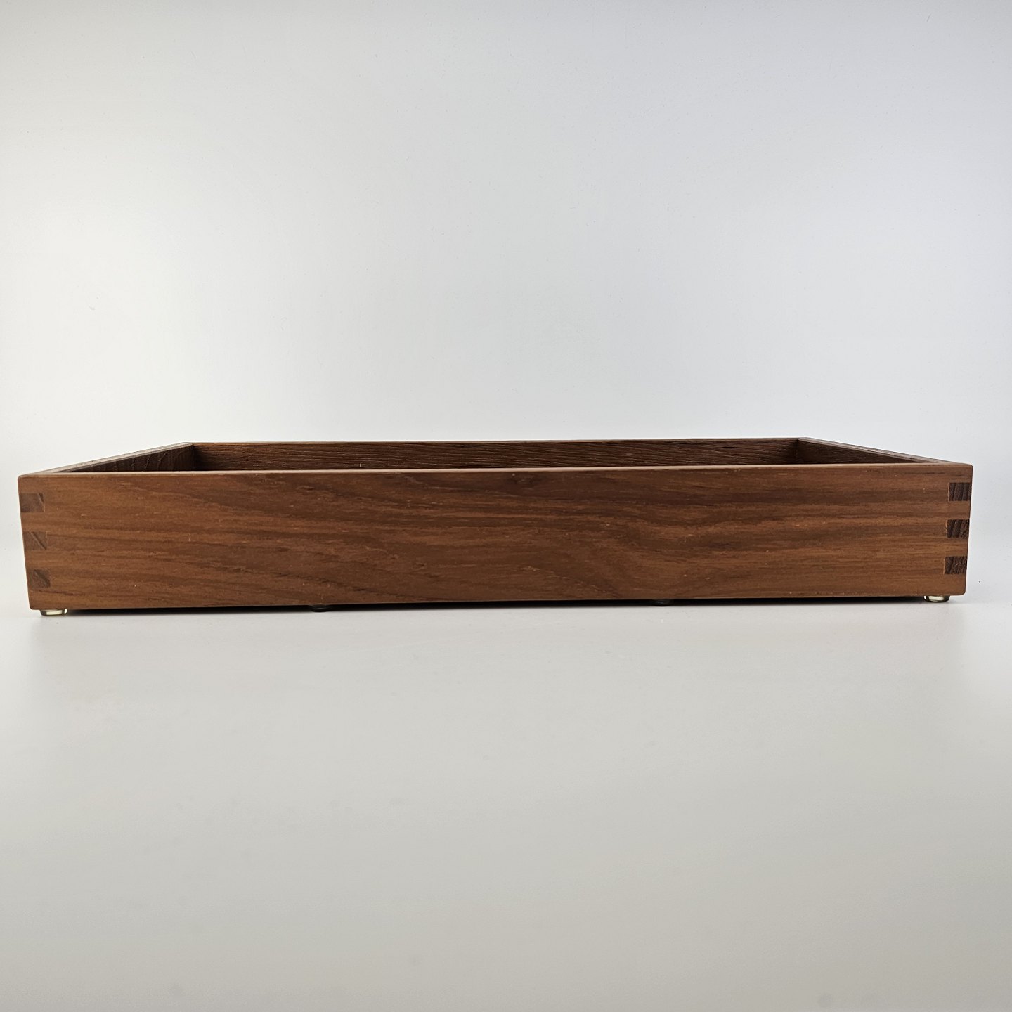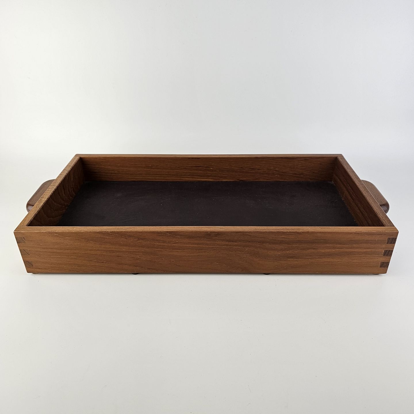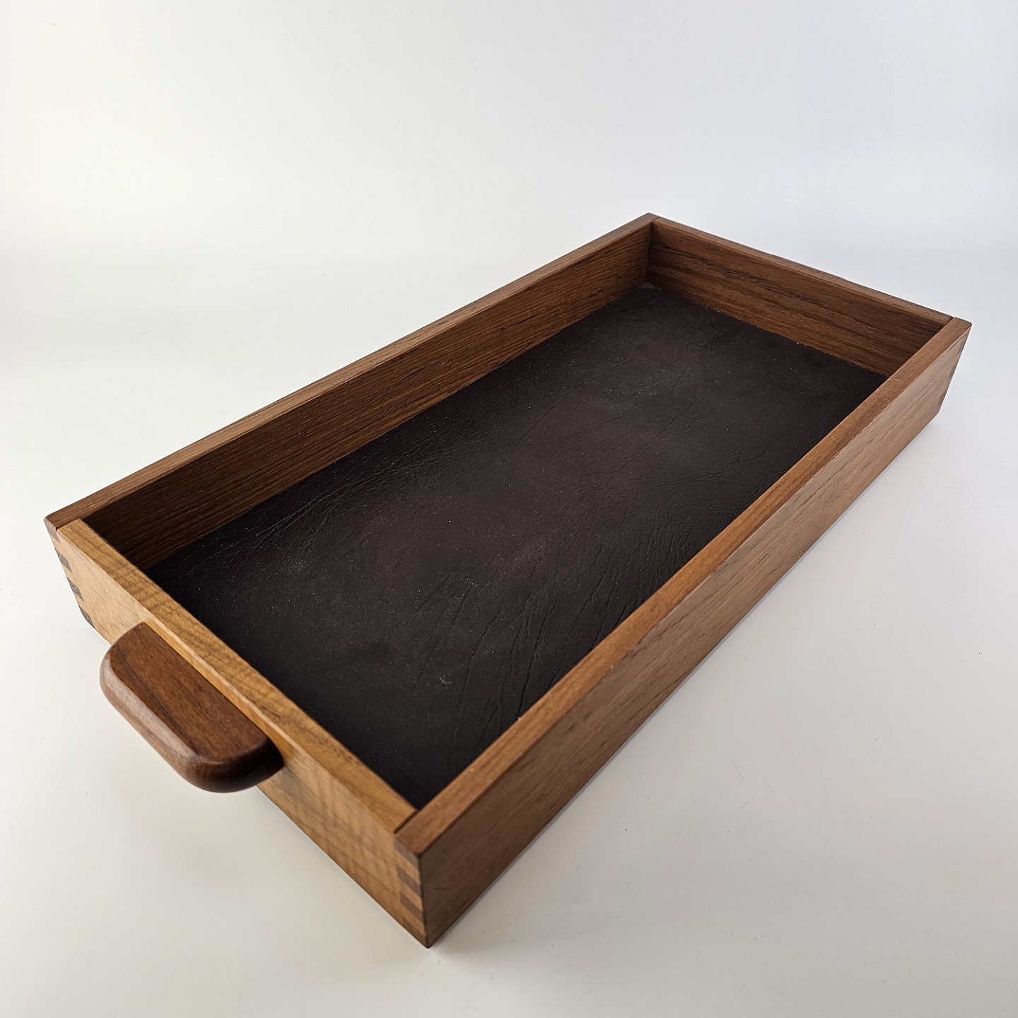 Bakke i teak træ med læder i bundenProducent ukendt