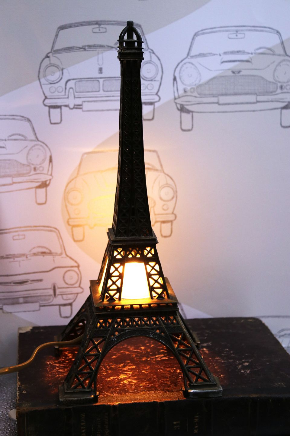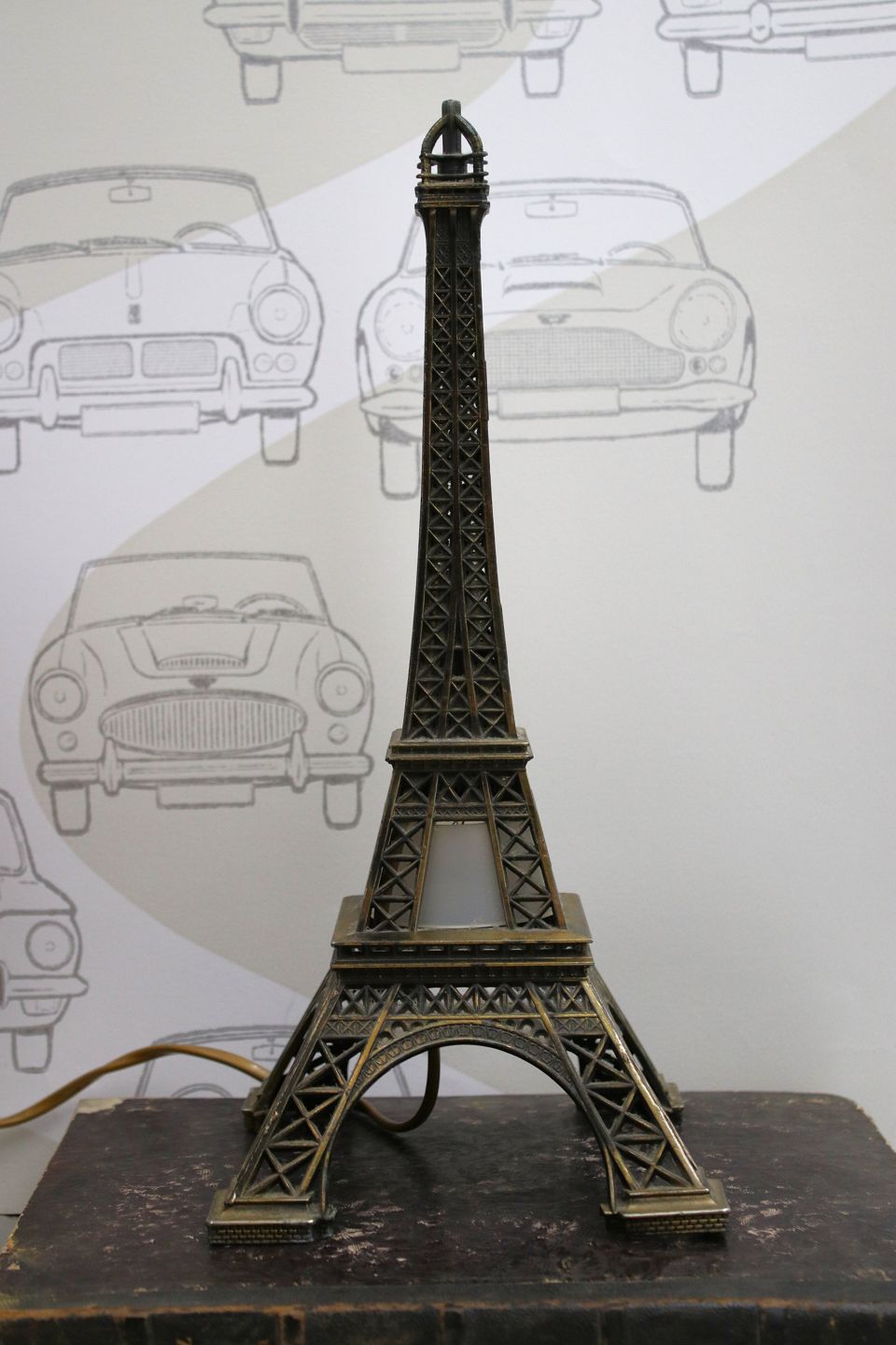 Gammelt miniature Eiffeltårn i metal med lys indeni.H: 35cm...