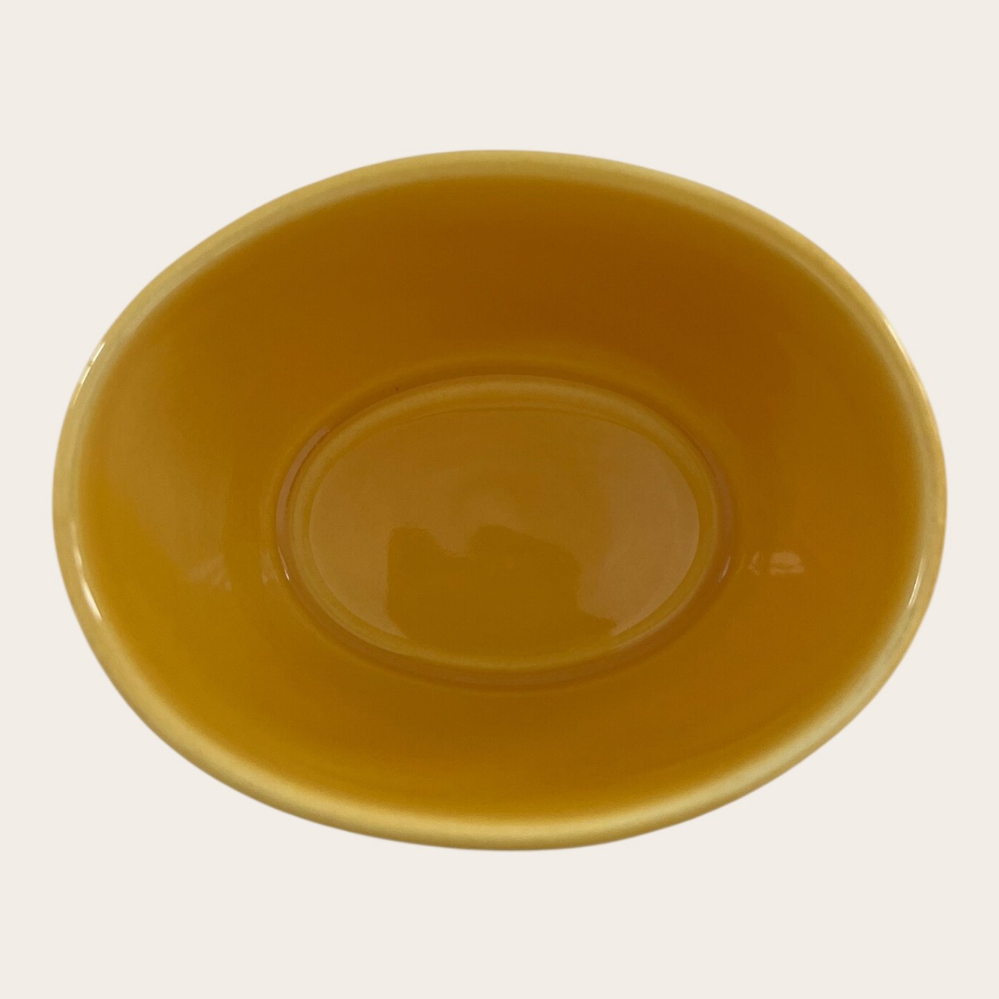 Royal Copenhagen, Aluminia, Ursula, Ovale Schale Nr. 570, Gelb, 8,5 cm lang, 6,5 cm breit, 5 cm hoch, Design Ursula Munch Petersen, 2. Wahl *Guter Zustand*Lager: 1