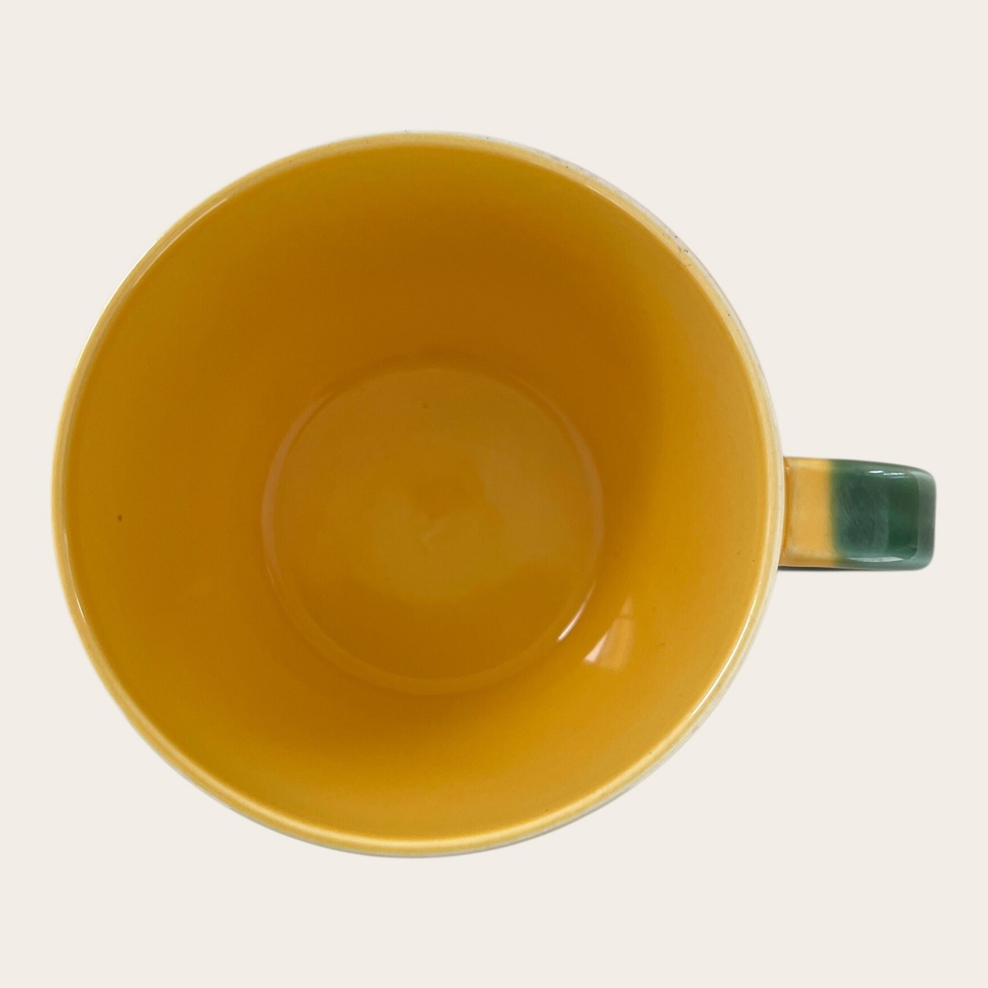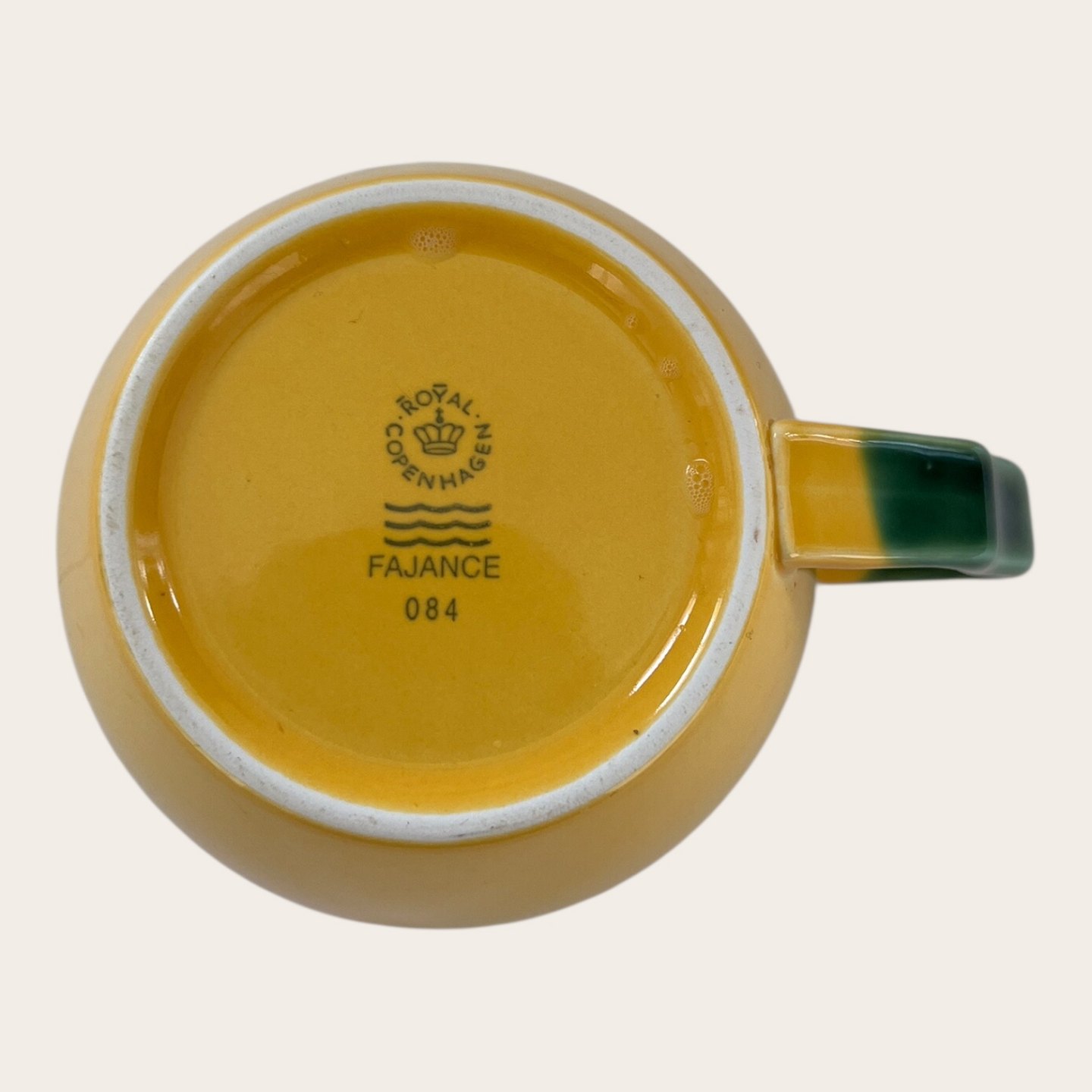 Royal Copenhagen, Aluminia, Ursula, Teetasse, Gelb/Grün Nr. 084, 13 cm breit, 7 cm hoch, 9,5 cm Durchmesser, Design Ursula Munch Petersen, 6 Stück dunkelgelb, 4 Stück etwas heller gelb *Guter Zustand*Lager: 10