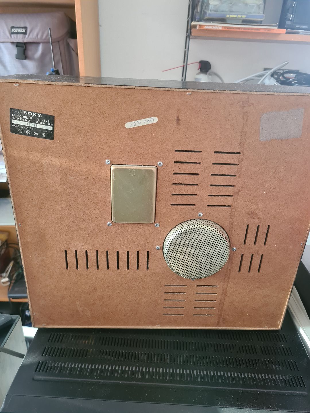 Spolebåndoptager fra Sony model TC-378. Fremstillet i 1977 og virker ok dog er counteren umiddelbart defekt. Trænger nok til lidt service både ydre og indre, men spiller som sagt udmærket. NB svagt indridset på fronten. (Billede)Højde 38 cm. Bredde 42 cm. Dybde 19 cm.
