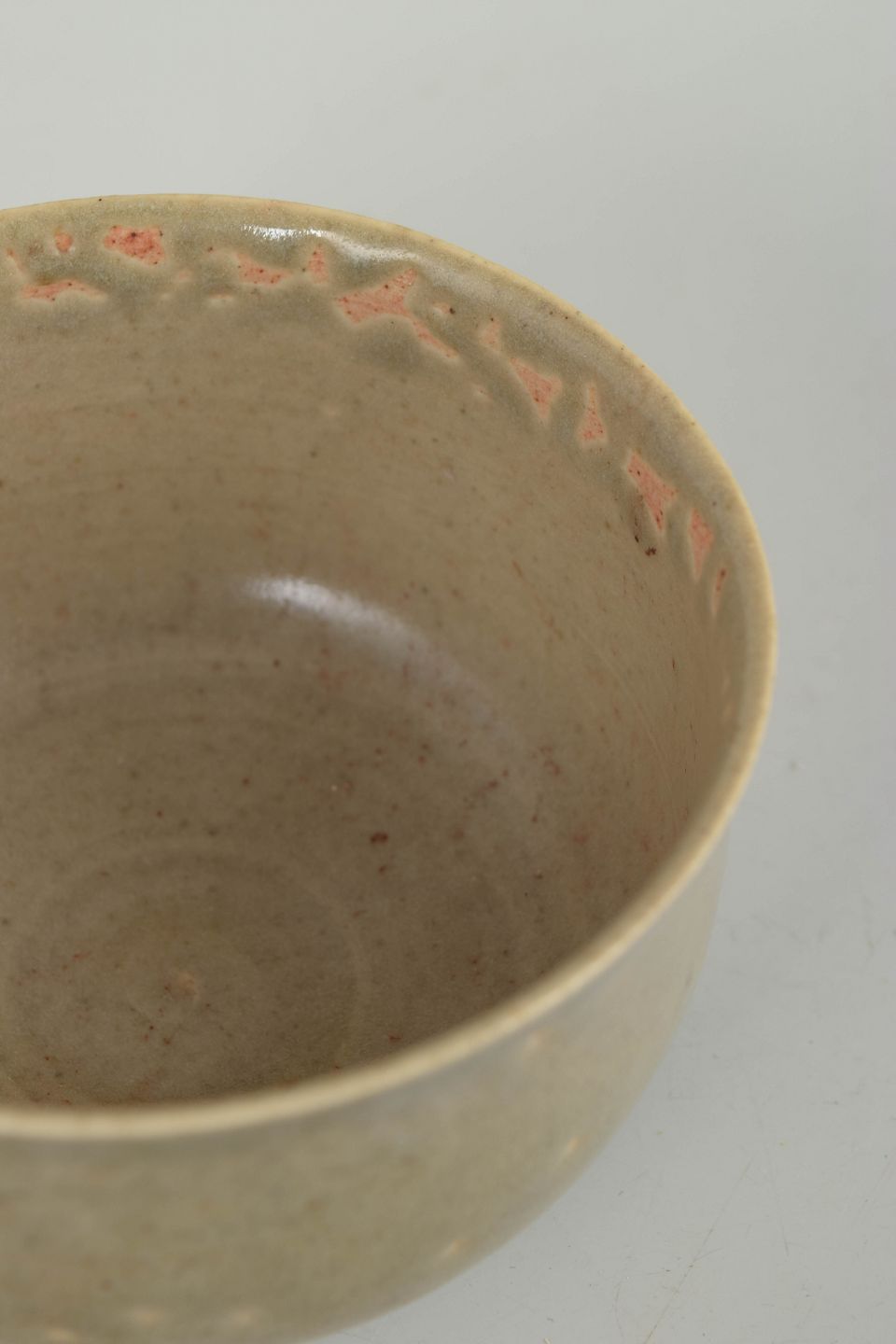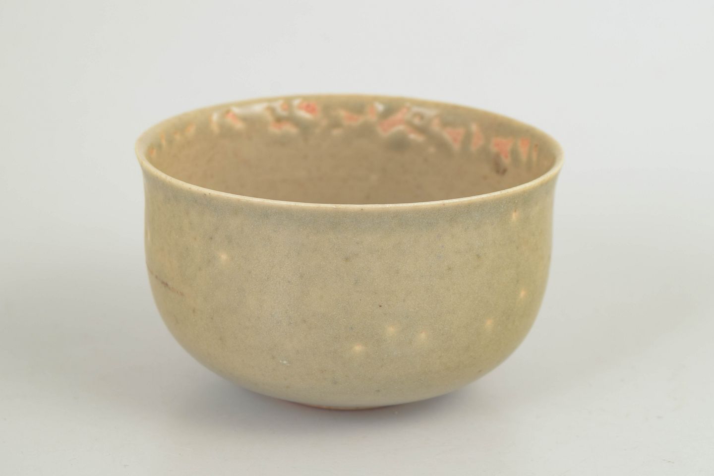 John Andersson for Höganäs, skål.Drejet skål i stentøj med afrundet form og let indadbøjet rand. Udført med lys, sandfarvet glasur med diskrete variationer og fine glasurspil langs kanten. Signeret i bunden, produceret hos Höganäs i 1970’erne.
