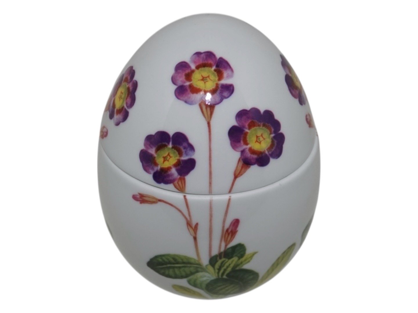 Royal Copenhagen påskeæg bonbonniere dekoreret med primula.1. sortering.
