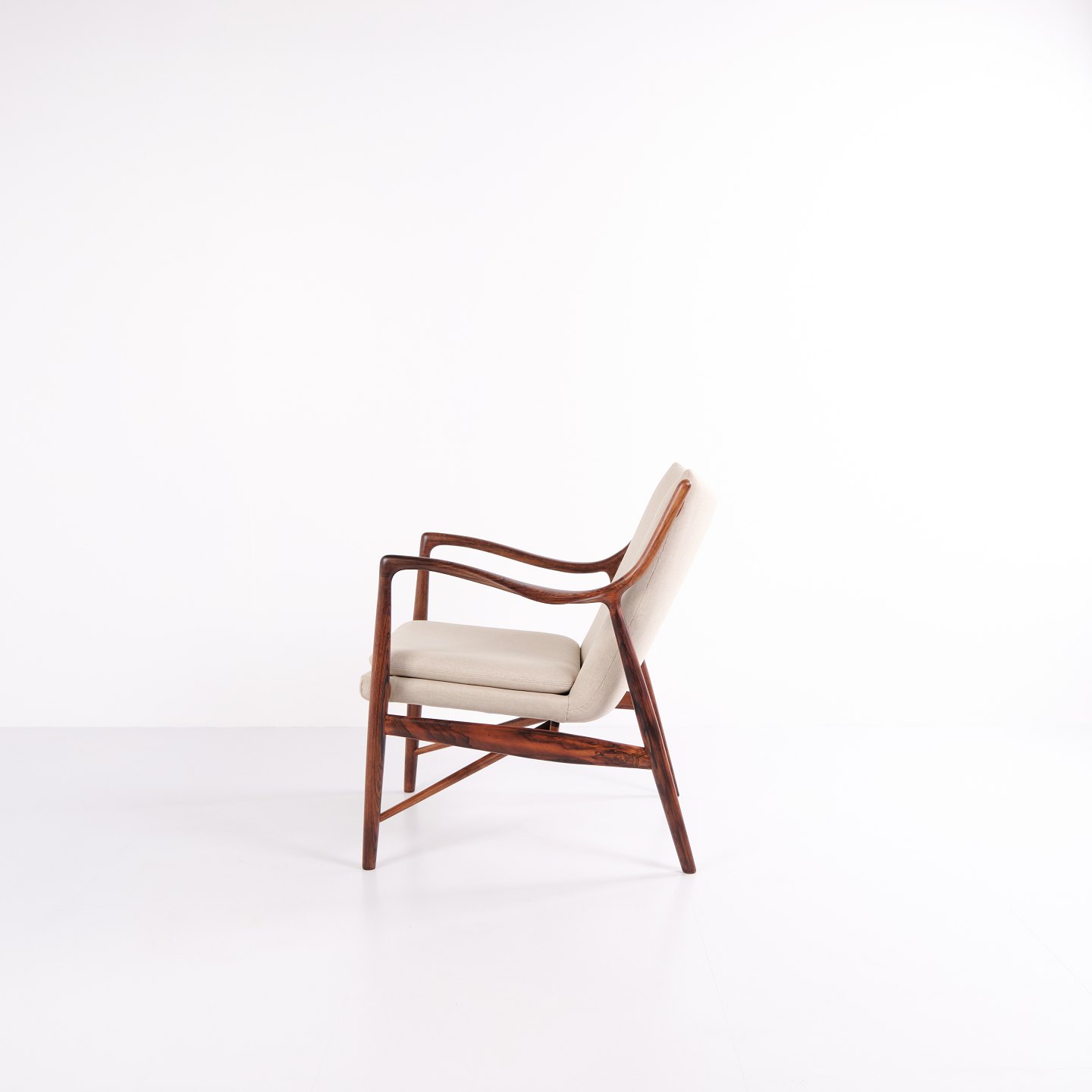 Sessel – Modell NV45 – Palisander und leichter Stoff – Finn Juhl – Niels Vodder – 1950er Jahre