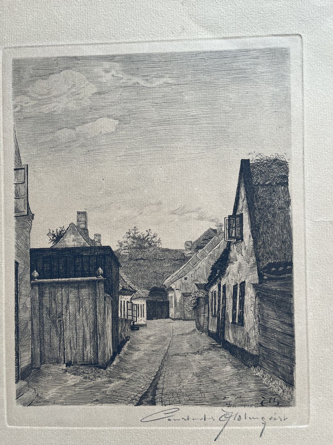 Radering af C. Holmqvist - Landsbyparti.