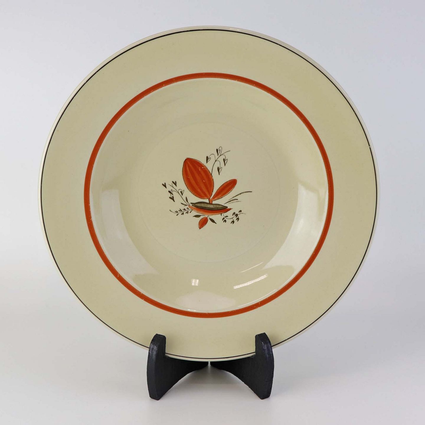 Dyb suppetallerken i fajance fra stellet Silkeborg fremstillet i perioden 1937-1939Formgiver Thorkild Olsen
