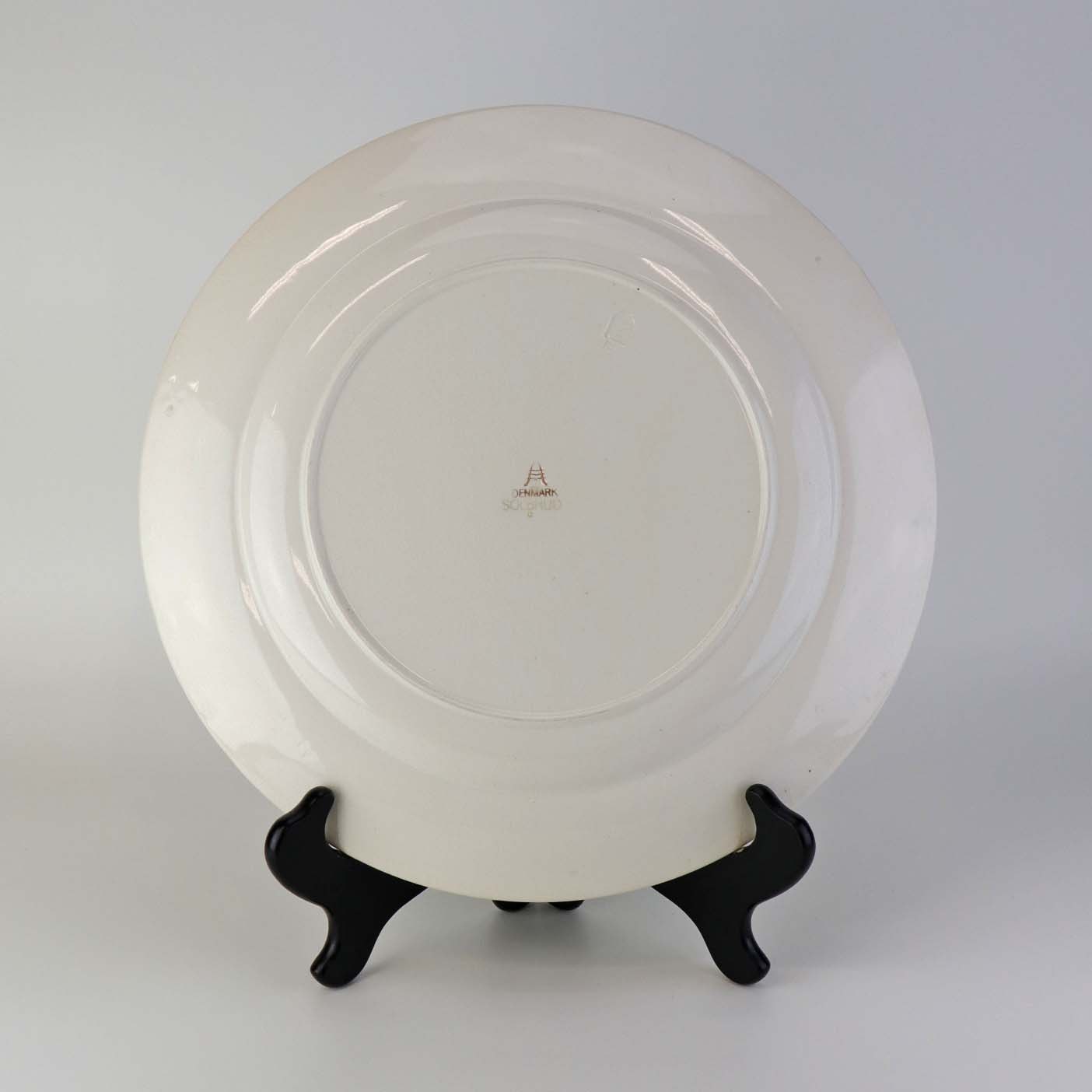 Rundt serveringsfad i fajance fra stellet Solbrud fremstillet i perioden 1937-1967Formgiver Nils Thorsson