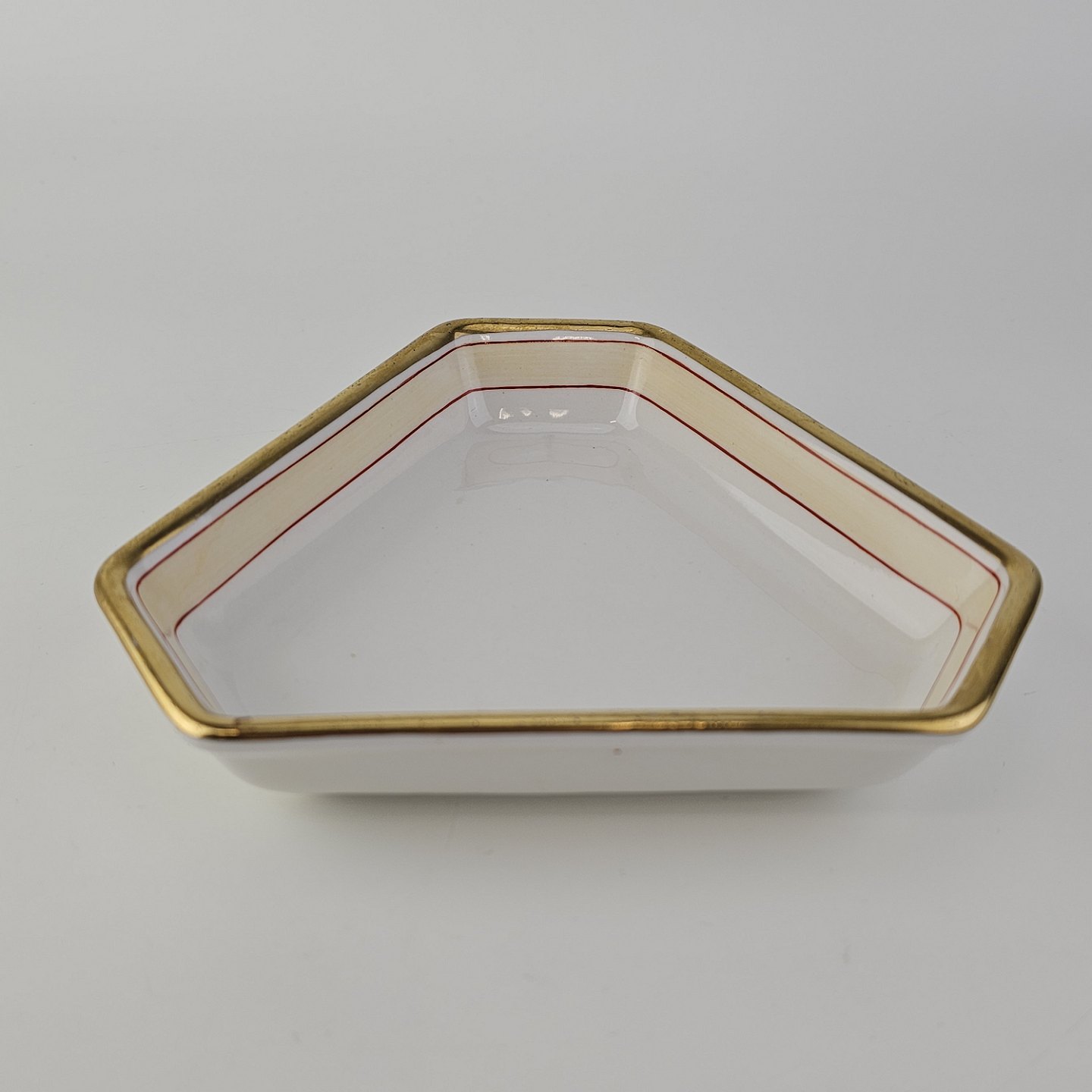 Trekantet fad i kongeligt porcelæn fra stellet Det spanske stel.Nr. 79/313 underfad til salt, peber og sennep.