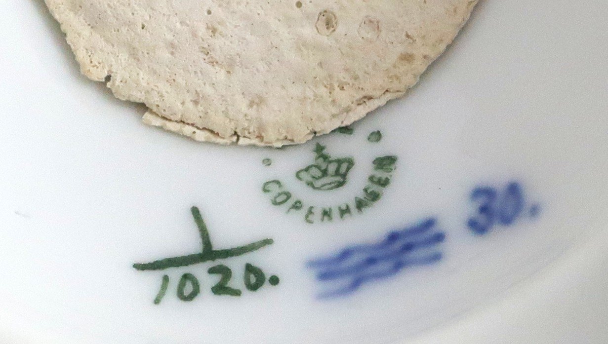 Königliches Kopenhagen. Musselmalet, vollspitze. Kuchenschale auf Fuß. Modell 1020. Höhe 14,5 cm. Durchmesser 20,5 cm. Hergestellt vor 1923. (1 Wahl)