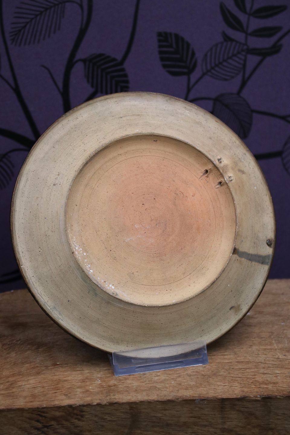 Gammel terrakotta tallerken / platte med bemalet motiv af julemærket fra Julen 1944...
