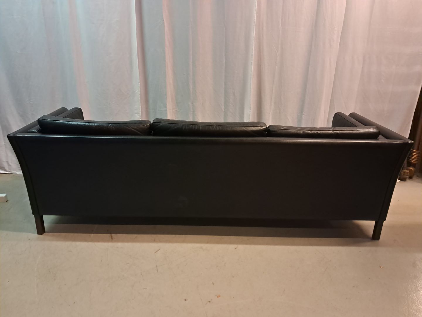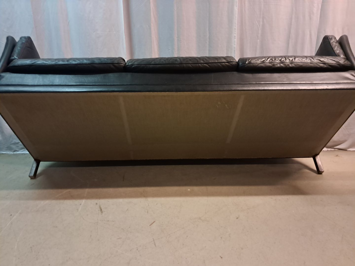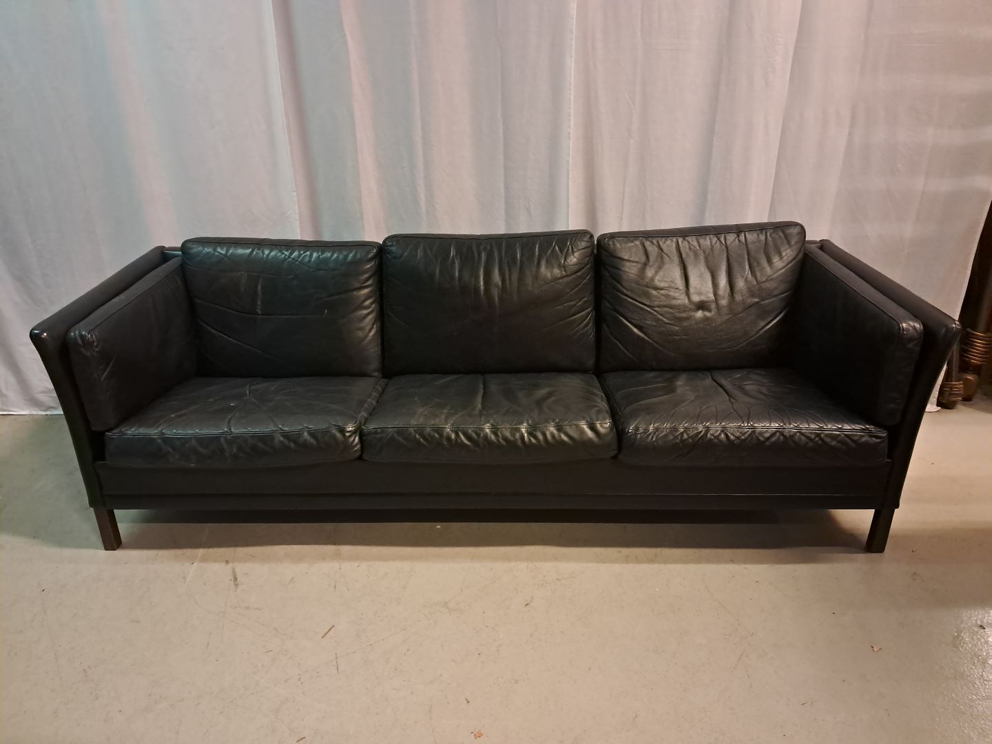 Sort lædersofa fra 1980erne.Den har brugsspor.