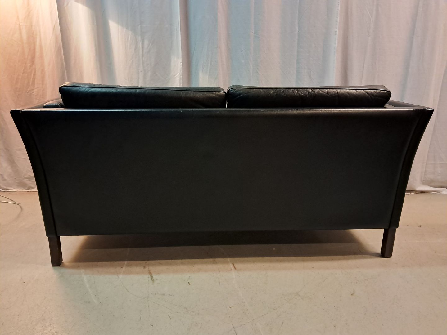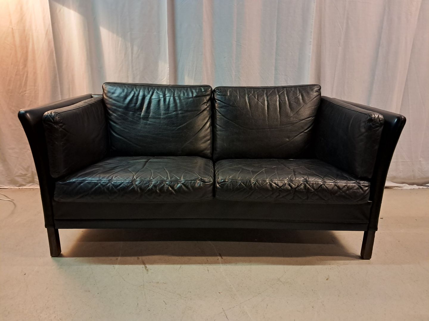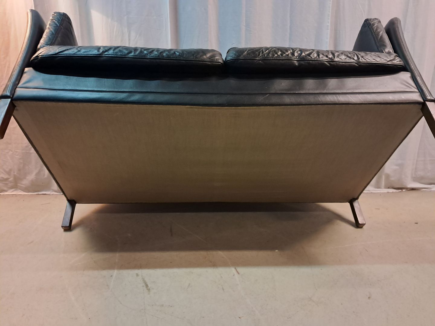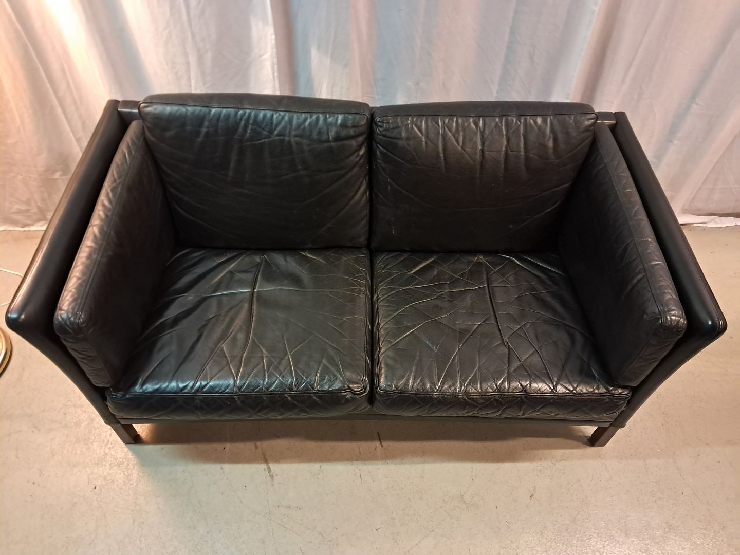 Sort lædersofa fra 1980erne.Den har brugsspor.