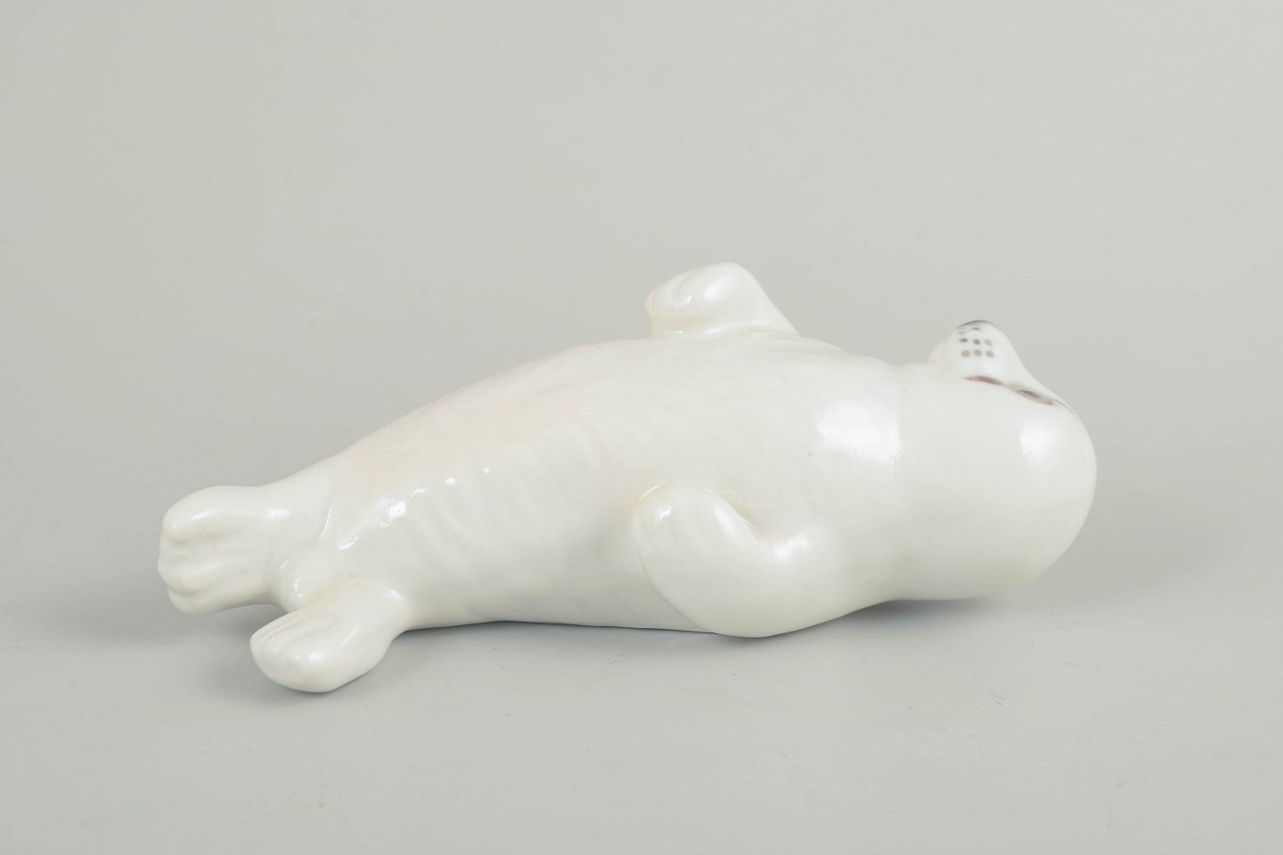 Royal Copenhagen, sælunge figur.Porcelænsfigur forestillende en liggende sælunge med afrundet, blød modellering og ensfarvet hvid glasur, der fremhæver figurens rolige og naturalistiske udtryk. Model 542.