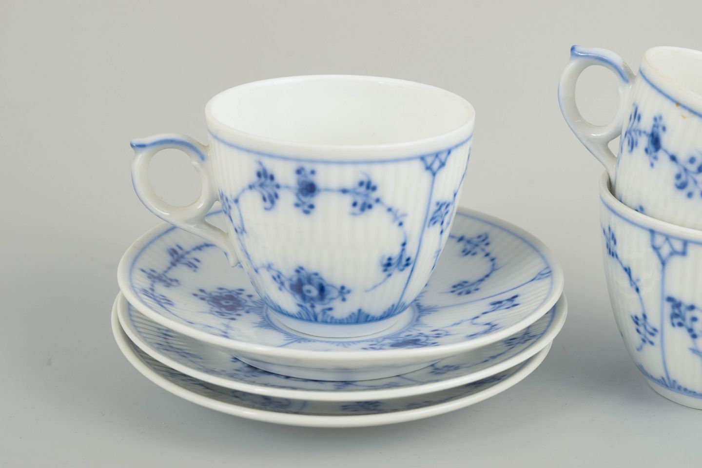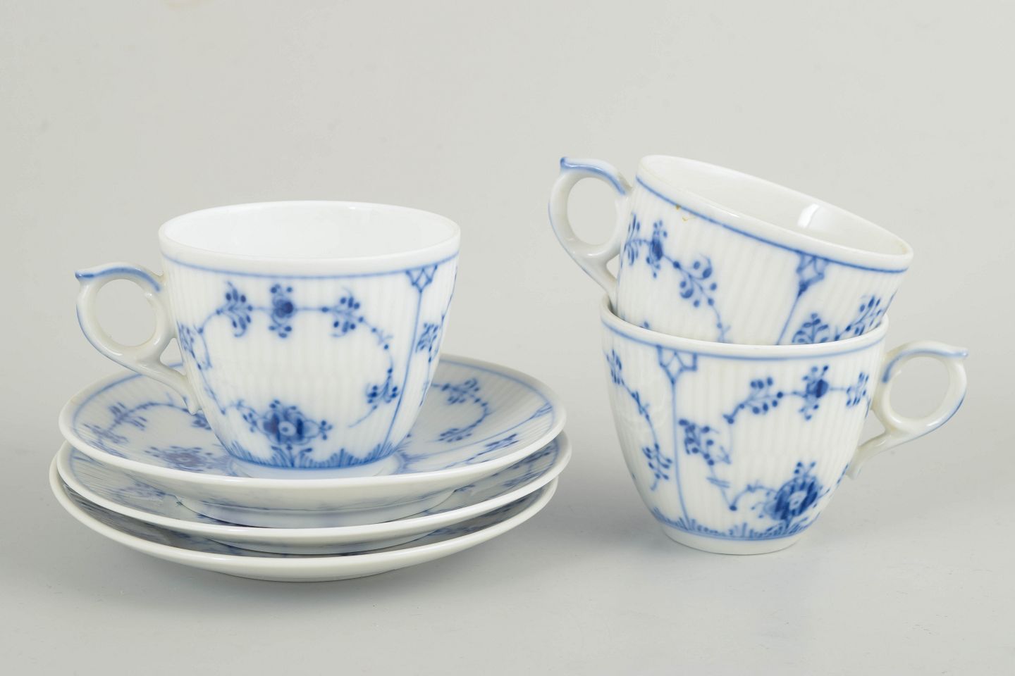 Royal Copenhagen, Musselmalet riflet kaffekopper med tilhørende underkopper, sæt af 3.Beschreibung: