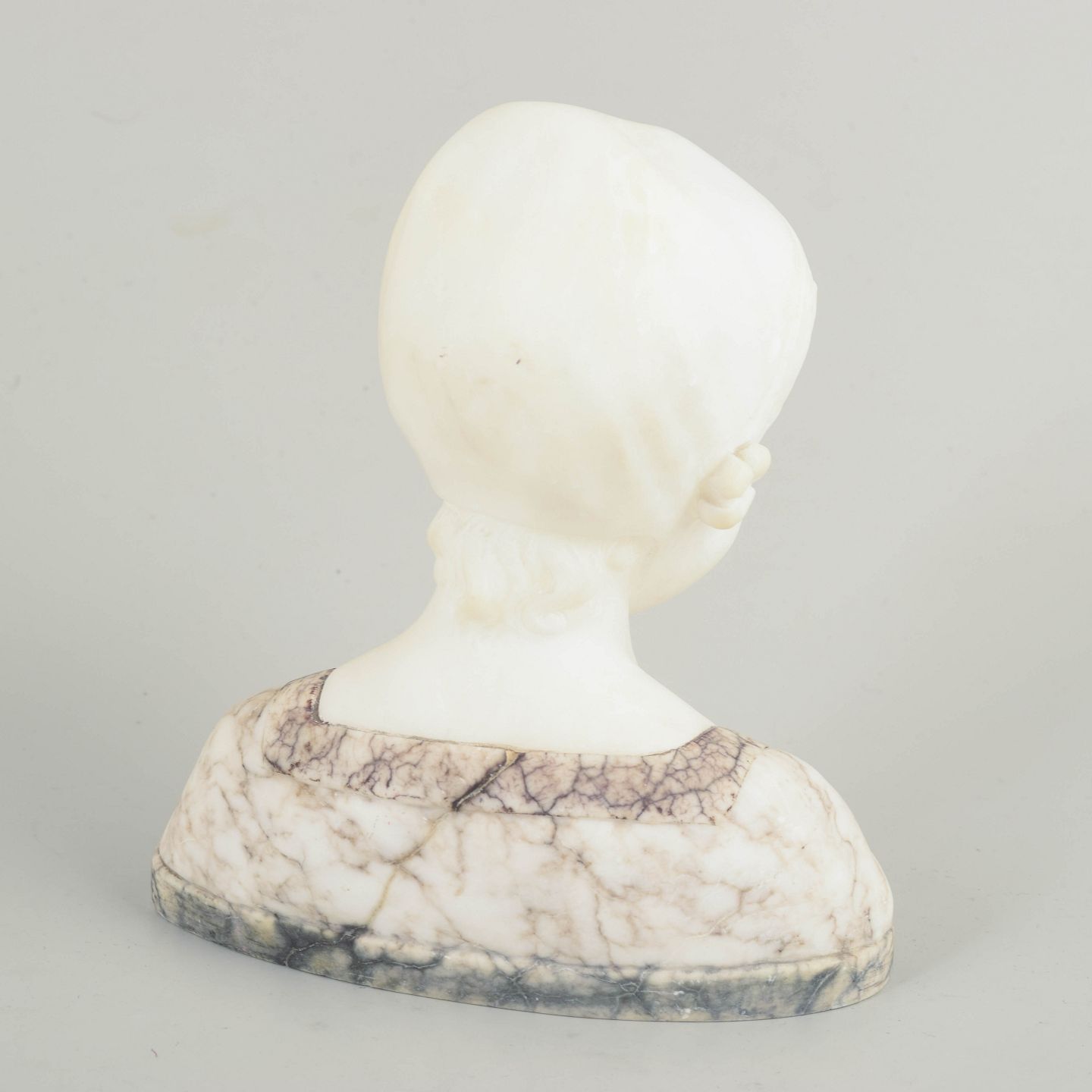 P. Braun, skønvirke buste. Tysk billedhugger.Fin buste i hvid marmor med blødt modelleret pigeportræt og lav sokkel i åretegnet marmor.