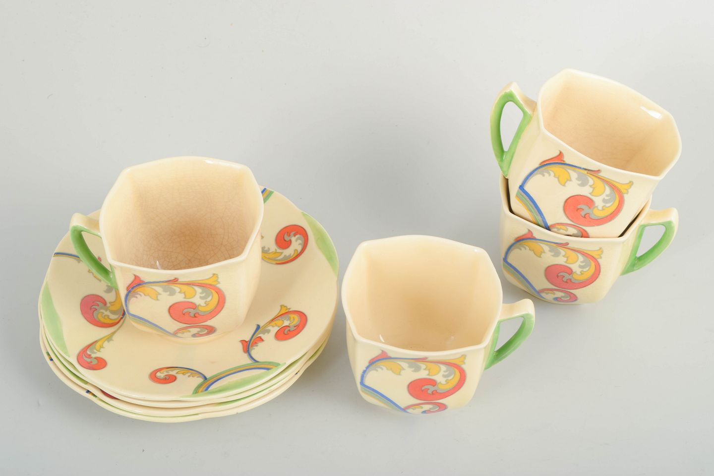 Clarice Cliff for Royal Doulton, sæt på 4 kaffekopper med underkopper.