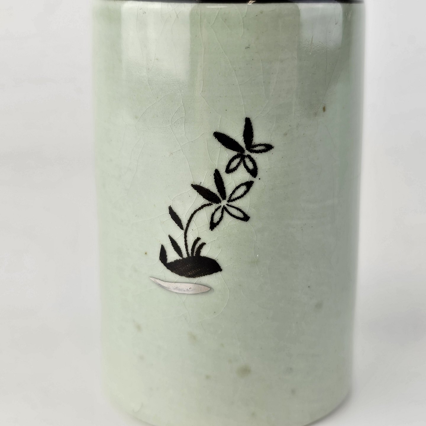 Stel i lysegrøn fajance med natur dekoration og flettet kant
