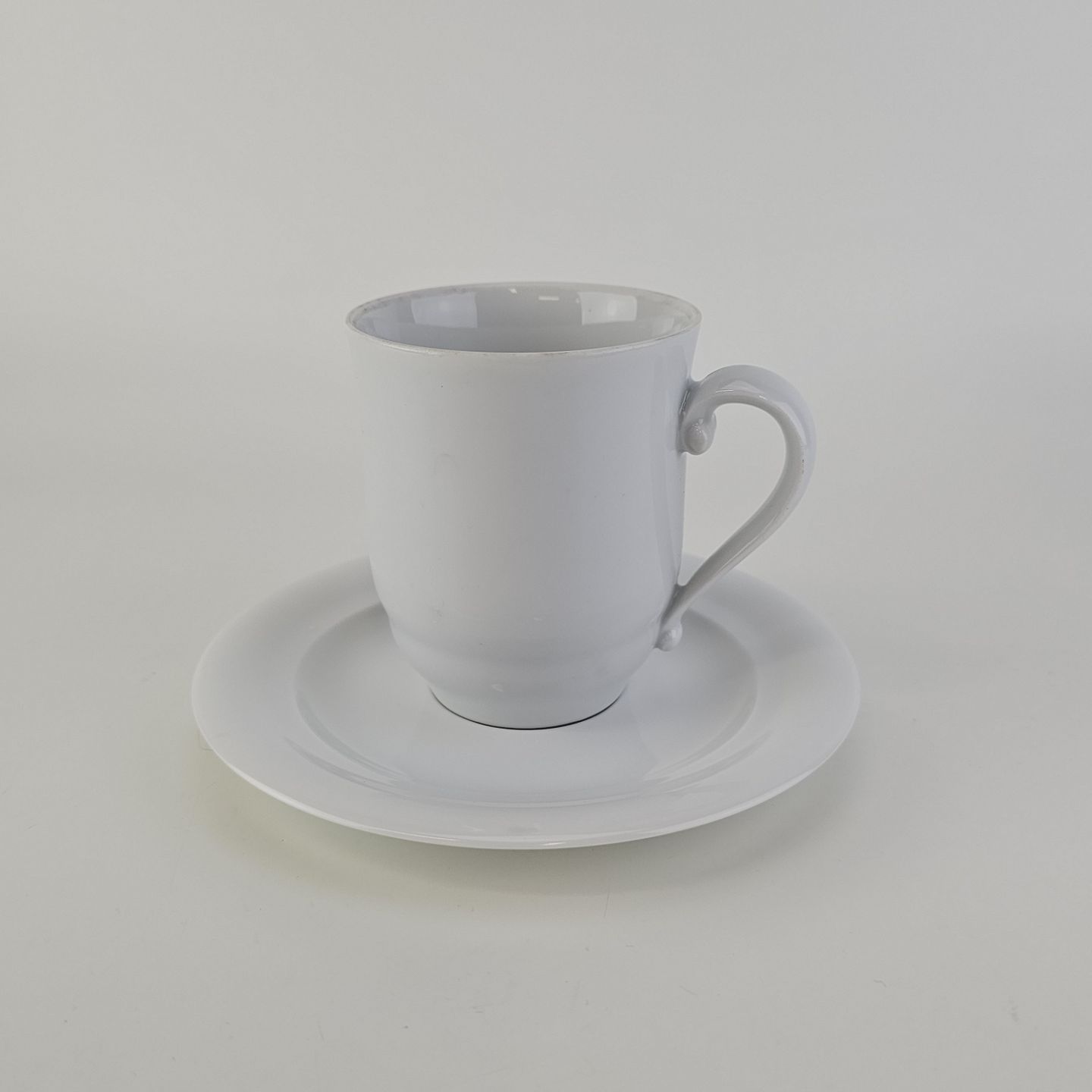 Høj kop med underkop i hvidt kongeligt porcelænKop nr. 494
