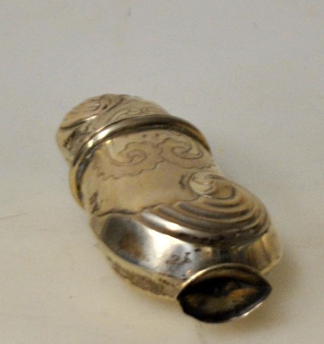Rokoko-Duftei aus Silber, 18. Jahrhundert. Dänemark. Mit Rokoko-Verzierungen außen. Innen vergoldet. Unpunziert. Höhe: 7,5 cm. Auf einem neueren ovalen Fuß.