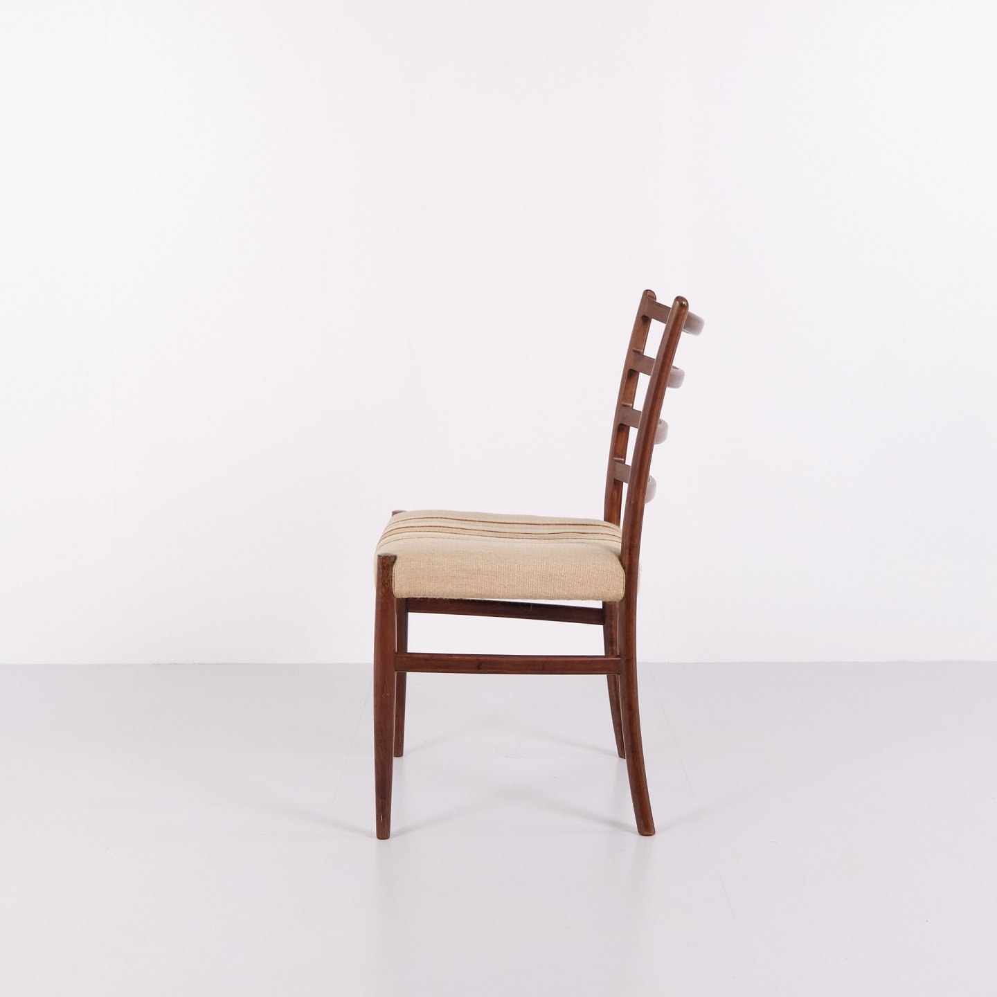 Esszimmerstühle von N.O. Møller aus Palisander mit gestreifter Polsterung aus den 1960er Jahren. Entwurf von J.L. Møllers Møbelfabrik.— Designer: N.O. Møller