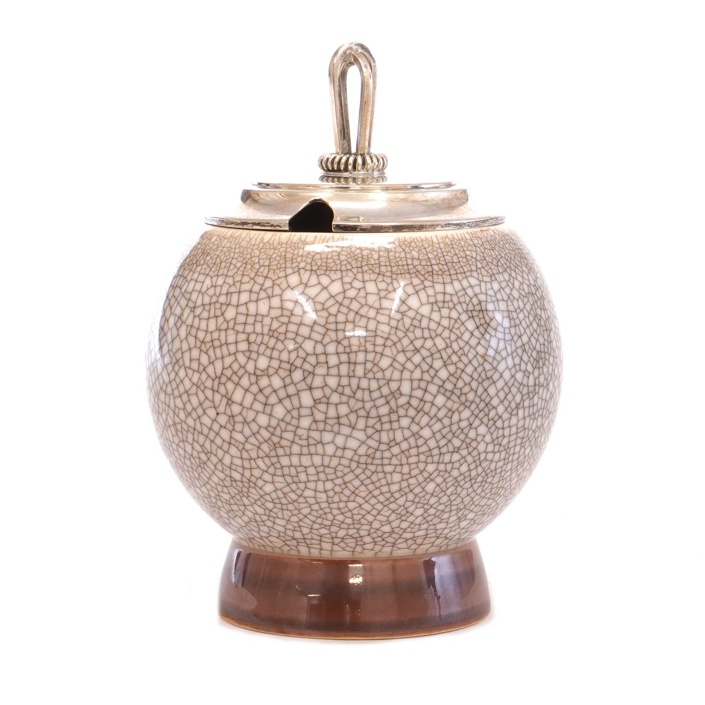 Konfitürentopf aus Porzellan von Bing & Grøndahl, Kopenhagen. Silberdeckel von Hugo Grün, Kopenhagen, 1949H: 13cm