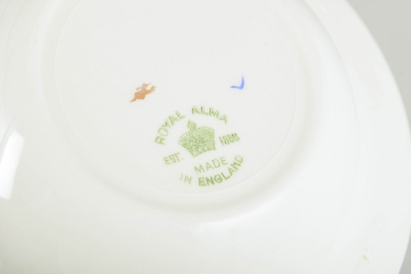 Engelsk fajance fra mellemkrigstiden blev ofte produceret som dekorativt og prisvenligt bordtøj, hvor trykte motiver og ornamenterede borter gav et elegant udtryk. I 1930’erne var romantiske figurscener og gyldne detaljer populære elementer, der skulle tilføre hverdagsservicer et mere festligt præg.