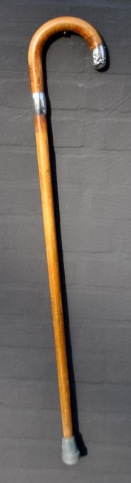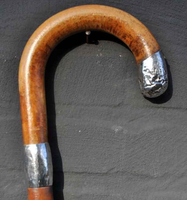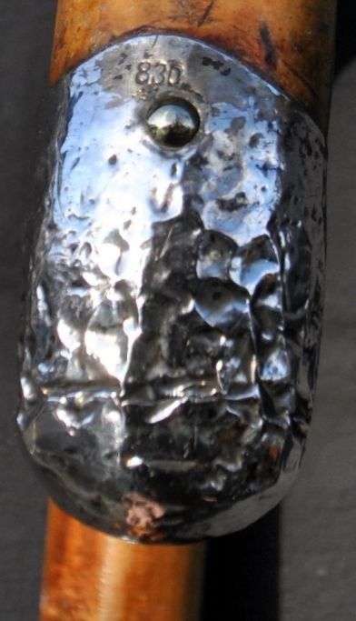 Gehstock aus Holz mit Silberbeschlägen von H. Schæbel, Kopenhagen, Dänemark, 1943–1973. Gestempelt: H.Sch. 830S. Mit Gummifuß. Länge: 89 cm.Bestellnummer: 28914