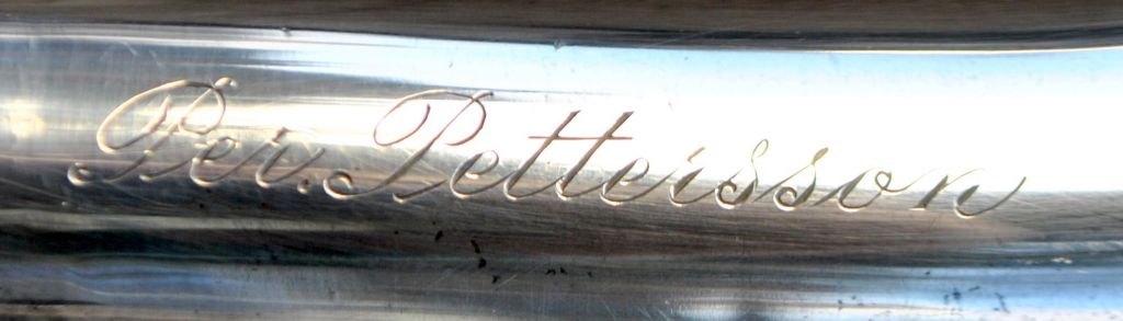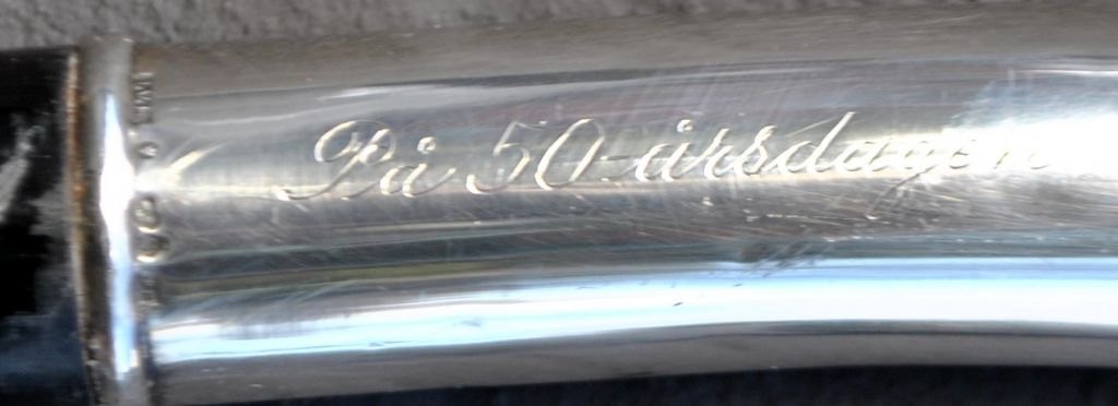 Gehstock aus Ebenholz mit Silbergriff, Schweden, 1947. Gestempelt: GVH. Graviert: Per Pettersson und Zum 50. Jahrestag. Länge: 90,5 cm.Bestellnummer: 28915