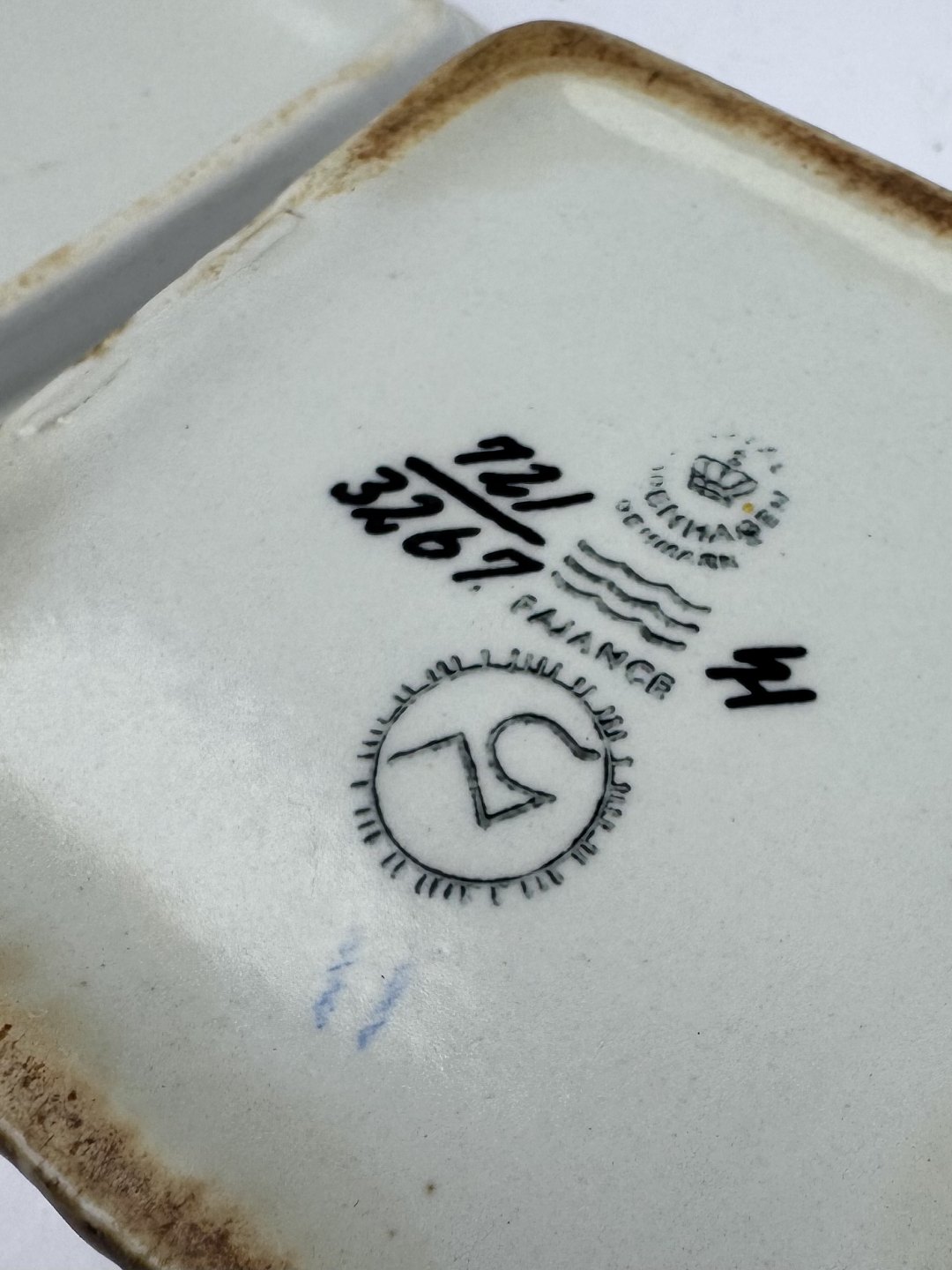 Nils Thorsson: Kvadratisk lågskål i fajance fra Royal Copenhagen designet af den svenske designer. Fremstår i perfekt stand. Mål: H. 4,2 cm samt 7,8 x 7,8 cm