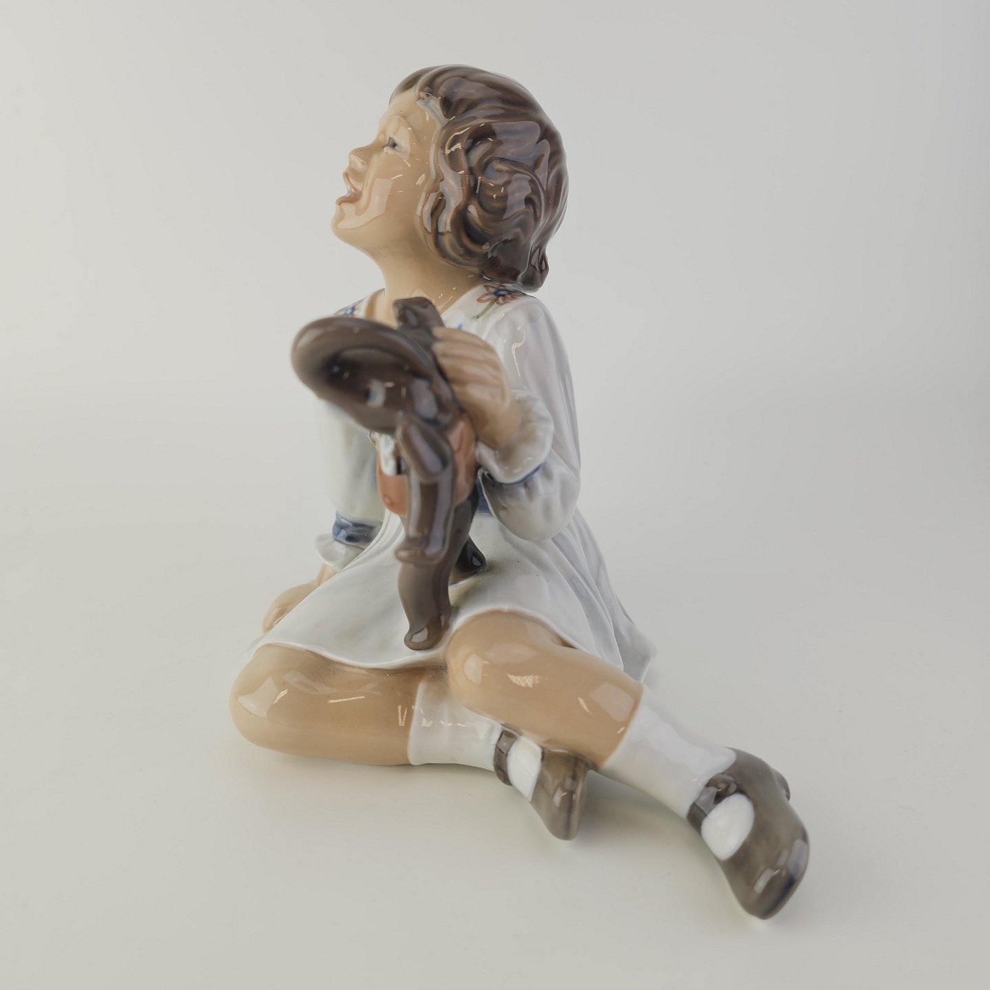 Figur i porcelæn med motiv af en pige med en legetøjselefant Nr. 1204
